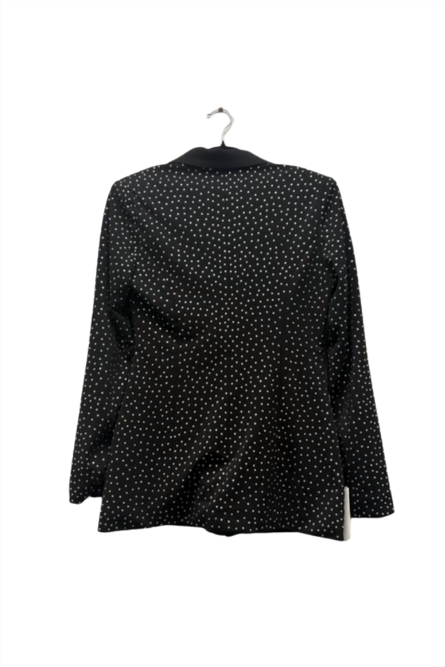 A blazer so versatile you can wear it to the office or pair it with jeans for a more casual look. Elevate your wardrobe with the Crystal Embellished Blazer by Miss Circle, a refined choice in striking black. This slim fit blazer boasts long sleeves, satin lapels, and hand-laid crystals, ensuring you stand out with confidence. Crafted from stretch crepe, it features a hidden workable button and convenient pockets.