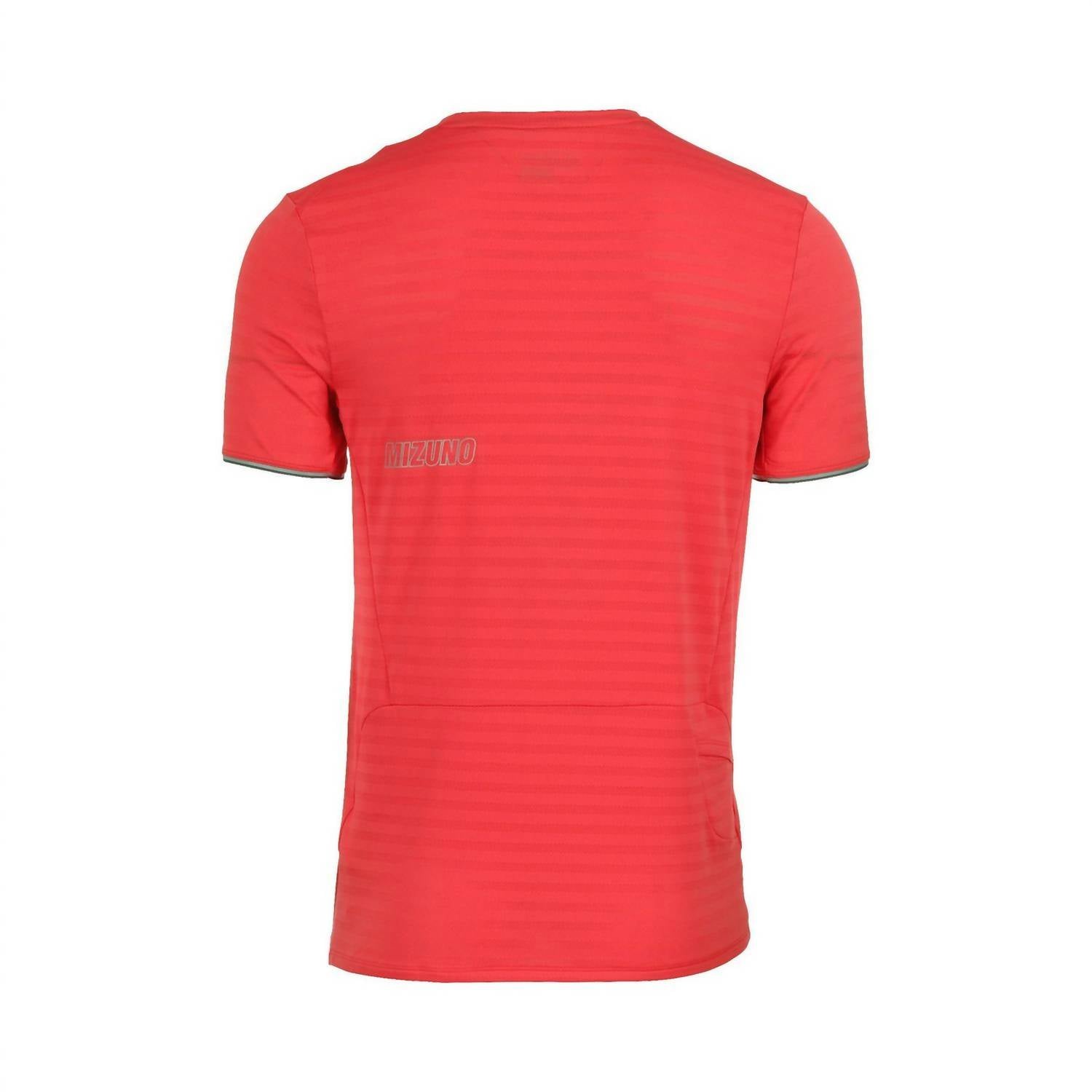 Introducing the Men's Alpha Eco Tee by MIZUNO, designed for eco-conscious athletes who value comfort and performance. This short-sleeve running tee is crafted with 48% recycled polyester, 44% polyester, and 8% spandex, offering a lightweight fit ideal for long runs. Featuring reflective elements for increased visibility and a convenient key pocket on the back, this tee promises both practicality and style. Closure: Pull on. Neckline: Crewneck. Color: Cayenne.
