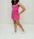 Introducing the Kendall Shortsie Romper by Mono B, designed in a vibrant cerise color to elevate your workout wardrobe. This romper boasts a flattering dolphin hem and a convenient pull-on closure for ease of wear, complemented by a fitted elastic waist and built-in bra for added support. Crafted from Polyester, this activewear essential is perfect for fitness and workout occasions. Care is a breeze with machine wash instructions.