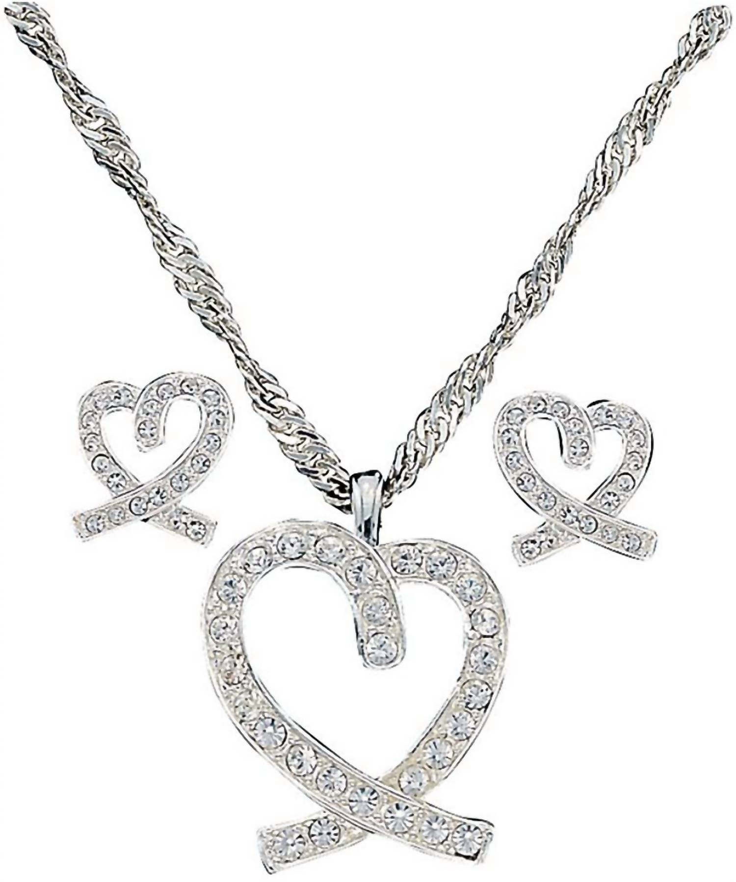 Both understated and impactful, you'll be reaching for this one-of-a-kind necklace season after season. The Montana Silversmiths Women's A Caring Heart In Clear Rhinestones Jewelry Set is crafted for those who value understated elegance with a touch of sparkle. Featuring hypoallergenic surgical steel posts and a mix of silver and gold electroplate, this set is adorned with cubic zirconia stones. The earrings measure 1/2", while the silver necklace pendant is 1 1/4" on a 16" chain with a 2" extender, making it a versatile choice for any occasion. Simulant-origin stones in a round brilliant cut complete this polished look in eye-catching sterling silver.