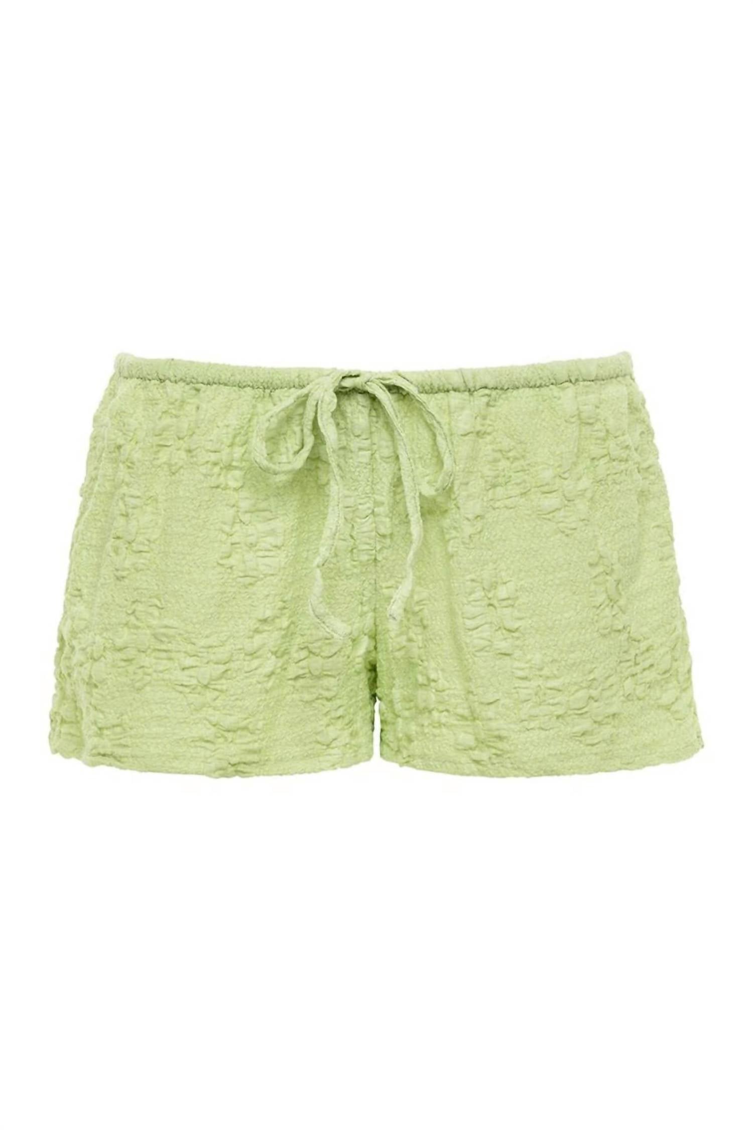 Fit to perfection, we love these high-waist shorts and you will too. The Montce Low-rise Drawstring Short in Avo Floral is a stylish addition to your summer wardrobe, perfect for vacations and minimalist looks. Crafted from an organic cotton polyester spandex blend, this piece features an adjustable drawstring waist for a custom fit. Material: Cotton Blend. Closure: Pull on. Care: Machine wash. Fabric imported from Turkey. Designed with no pockets, its textured pattern adds a chic touch to any outfit.