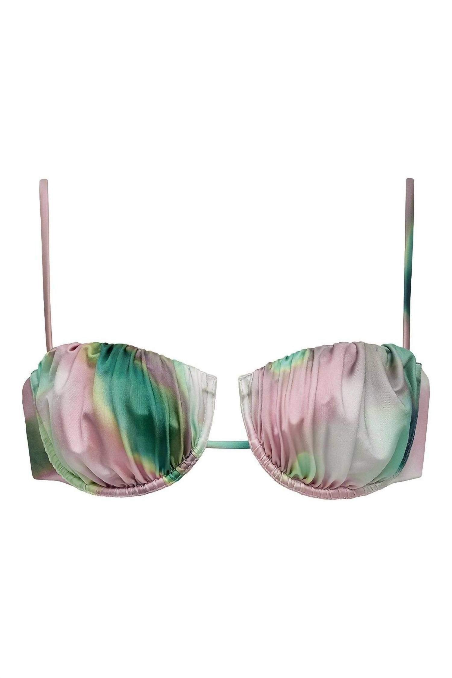 Embrace boho chic with the Montce Petal Underwire Demi Bikini Top, designed in a Silk Dye tie-dye pattern that captures the essence of summer beach days. This swim top offers moderate bust support with its underwire and demi cup design, featuring adjustable straps and a back hook closure for a comfortable fit. Crafted from a blend of 80% recycled nylon and 20% spandex, this delicate fabric is OEKO-TEX certified and provides UV protection with UPF 50+. Care for this stylish piece by hand washing to maintain its vibrant look and lasting quality.