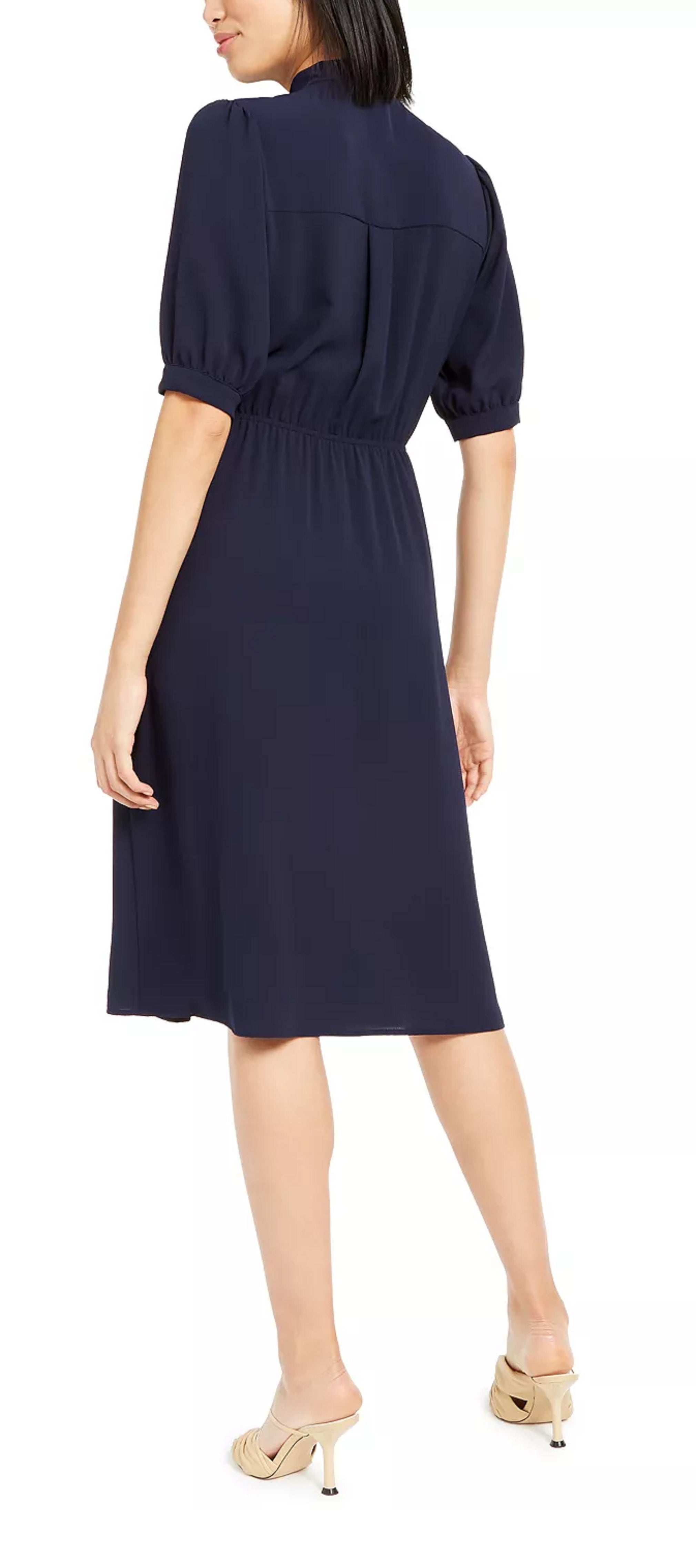 Monteau Women's Tie Neck Shirtdress Blue Size X-Large