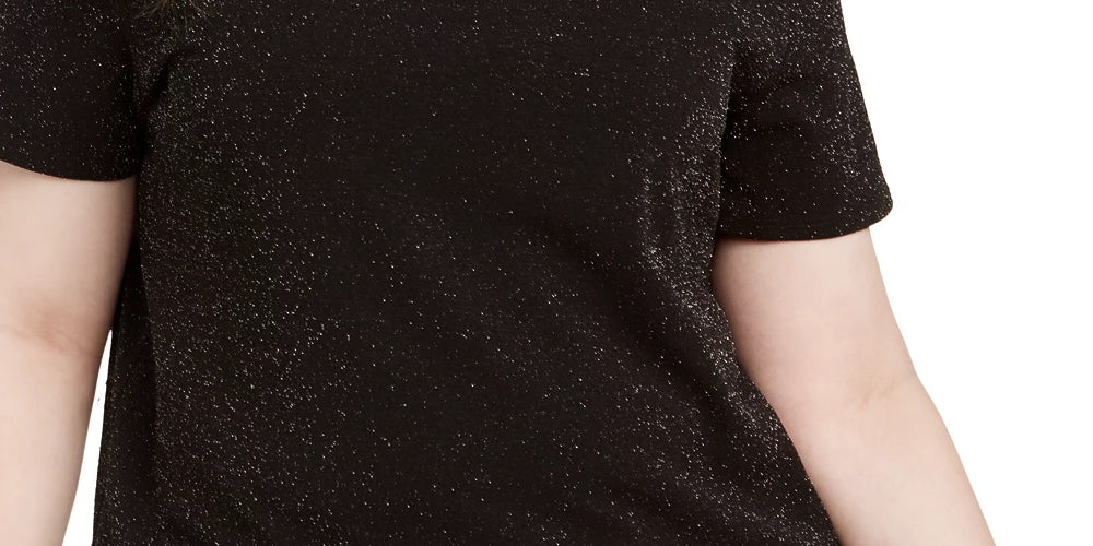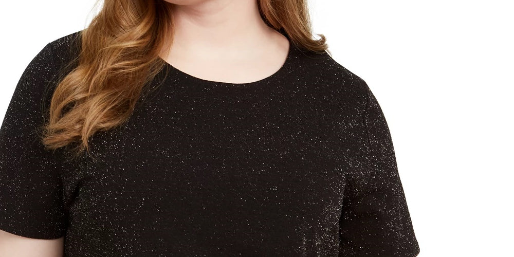 Relaxed fit; approx. 21-1/2" long|Crewneck|Scalloped hem|Polyester/metallic/spandex|Hand wash|Imported