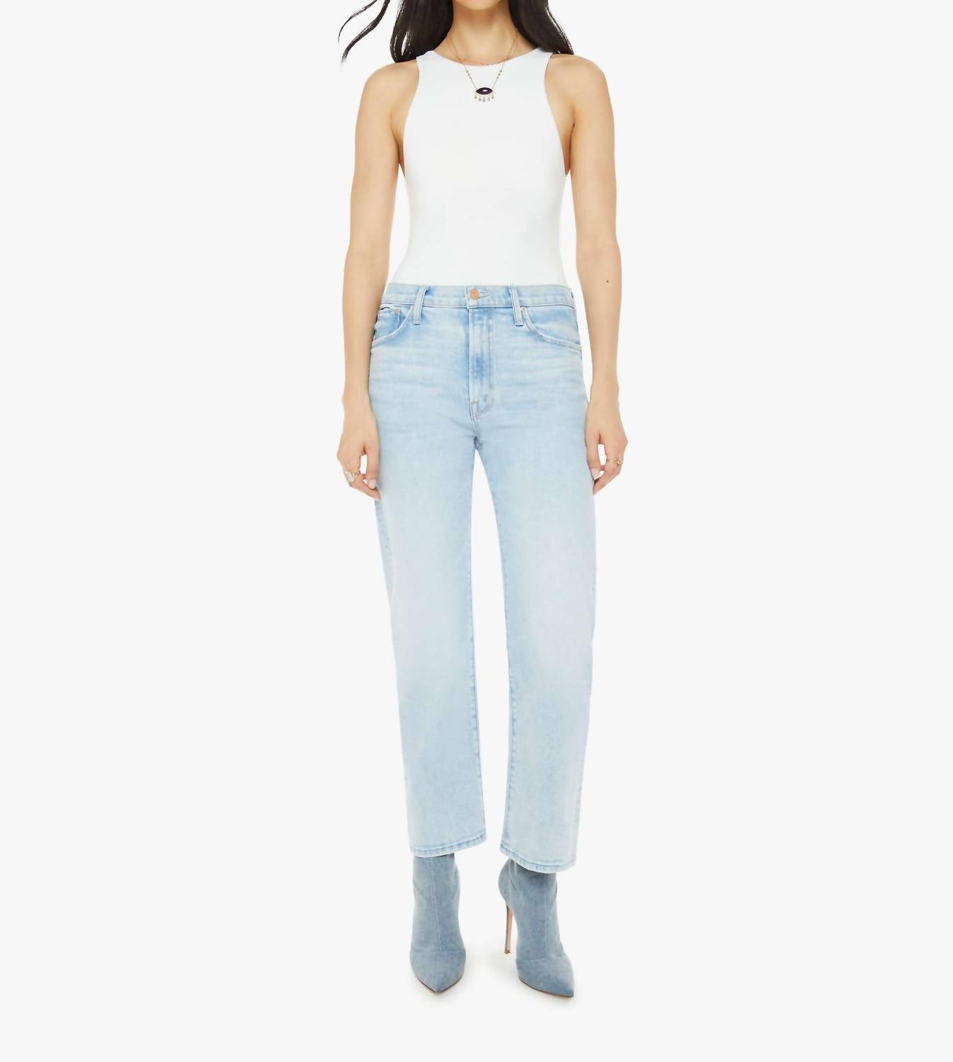 Comfortable and stylish, we love this cropped jean for all of the obvious reasons. Discover the Ditcher Zip Ankle Pants by Mother, a stylish staple in the light blue "Light As A Feather" wash. These ankle-length jeans boast a relaxed fit with a straight-leg silhouette, mid-rise waist, and slightly dropped crotch, ensuring a comfortable and chic fit. Made from a cotton blend with a touch of stretch, they feature a zip fly with button closure and handy pockets, crafted in LA. Perfectly machine washable and suitable for tumble drying, these jeans are a versatile choice for both casual and elevated looks, embodying a nod to '90s fashion trends. 96% Cotton, 3% Polyester, 1% Elastane.