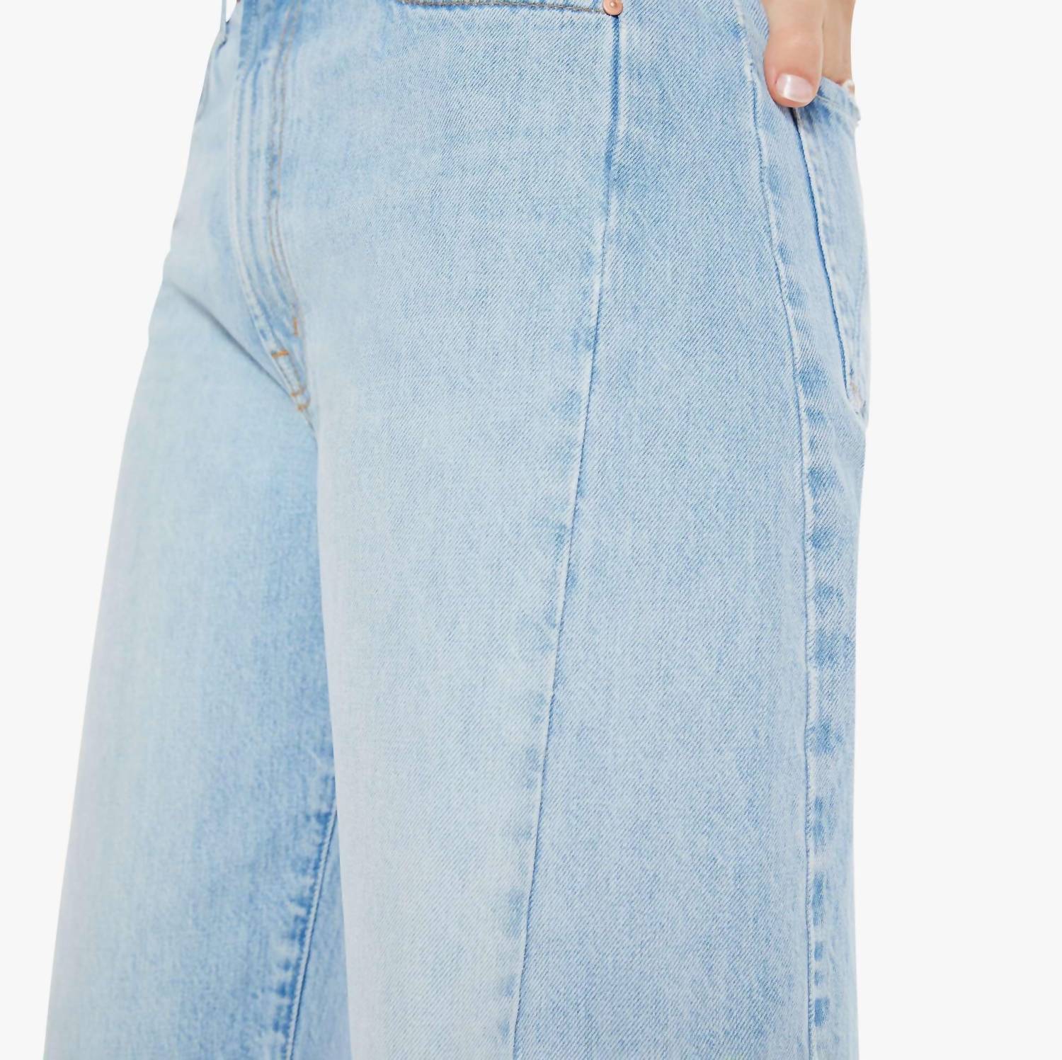 Introducing the Full Pipe Flood Back Pedal Pants by Mother, a stylish addition to any wardrobe with a light blue finish perfect for streetwear trends. These high-waisted jeans feature a full barrel bootcut leg and a comfortable 12.5-inch rise, with a 28.25-inch inseam and a 19-inch leg opening. Crafted from 100% rigid SUPERIOR cotton denim, they offer excellent durability and develop personalized wear over time. Made in the USA, these trousers close with a button, featuring functional pockets ideal for a casually chic dinner party look.