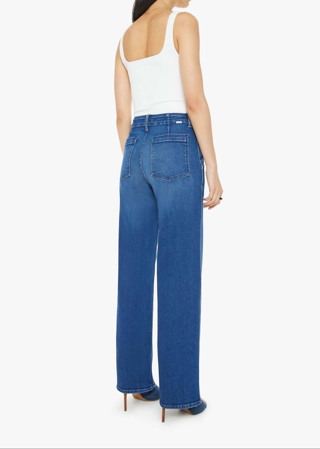 A perfectly tailored straight leg that you'll want in every color! The Major Zip Sneak Pants by Mother are a stylish addition to any fashion-forward wardrobe. Perfect for a minimalist, these high-rise pants feature a straight leg cut with a 32-inch inseam and a 12.25-inch rise, crafted from a comfortable cotton blend. Designed in a dark blue medium wash with subtle whiskering, they include practical side slit pockets and a seamless zip closure. Made in Los Angeles, they are easy to care for with machine wash and tumble dry instructions, making them ideal for a dinner party or casual spring outing.