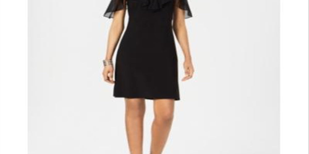 msk petite cold-shoulder ruffled dress other petite clothing - dresses