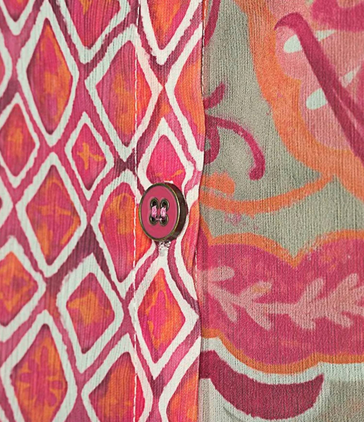 A versatile blouse that works from desk to dinner! Unveil a vibrant addition to your wardrobe with the Multi Print Crinkle Blouse by Multiples. This eye-catching women's blouse features a colorful patterned design in striking fuchsia, sure to make a statement. Crafted from durable polyester, it boasts long sleeves and a distinctive crinkle detail. Closure: Button closure. Care: Machine wash. Perfect for those who love to blend style with ease.