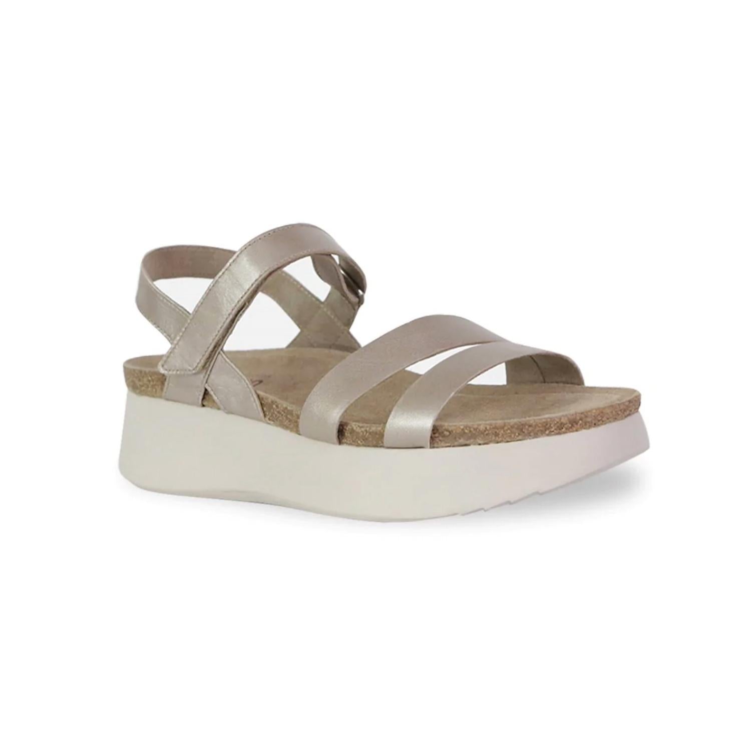 This sandal will take you from brunch to dinner and everything in between. This strappy sandal features a modern platform wedge and a comfortable contoured footbed made with sustainable cork for natural support. It includes a soft suede sock lining and a convenient hook-and-loop instep closure, combining ease of wear with stylish functionality.