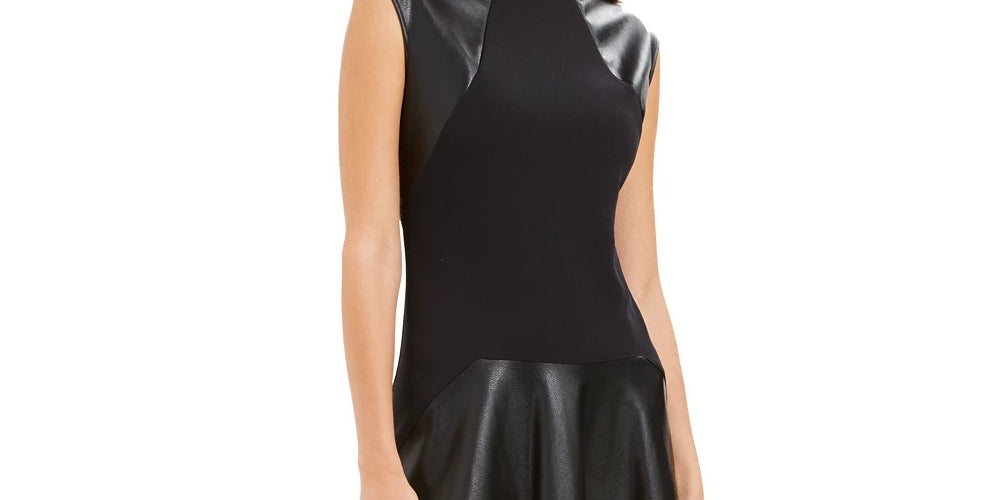 N Natori Women's Faux-Leather & Scuba Flounce Dress Black Size 8