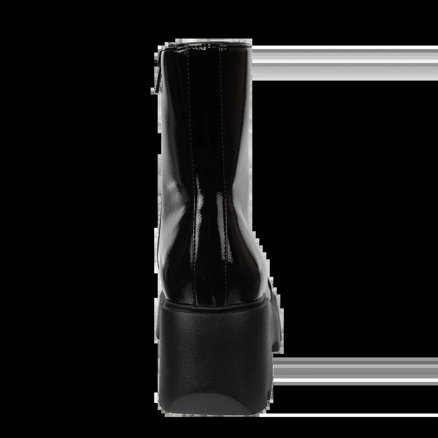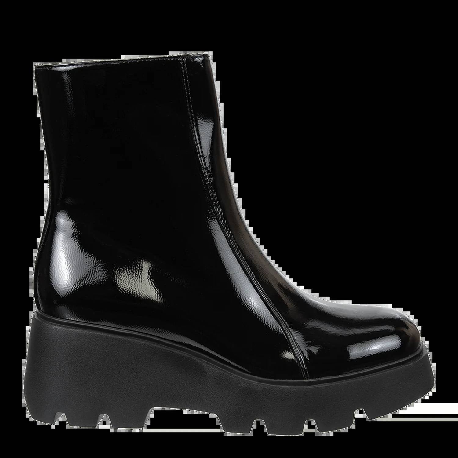The moto boot trend is here to stay and we especially love this style. Introducing the Xenus black patent lug sole boots, where high fashion meets empowered edge in an effortlessly functional package. Xenus features a sleek, feminine silhouette that grazes the ankle with a high-gloss finish designed to turn heads, while the platform lug sole adds a bold statement to every step. Details: Women's platform ankle boots Feminine, utilitarian silhouette Modern stitching Round closed toe Inside zipper closure Materials: Handcrafted with genuine napa leather Faux leather lining Padded sock Padded removable footbedEVA platform Rubber lug outsole Measurements: 2.5" platform 5.25" shaft height 9.40" shaft circumference Fit: True to size