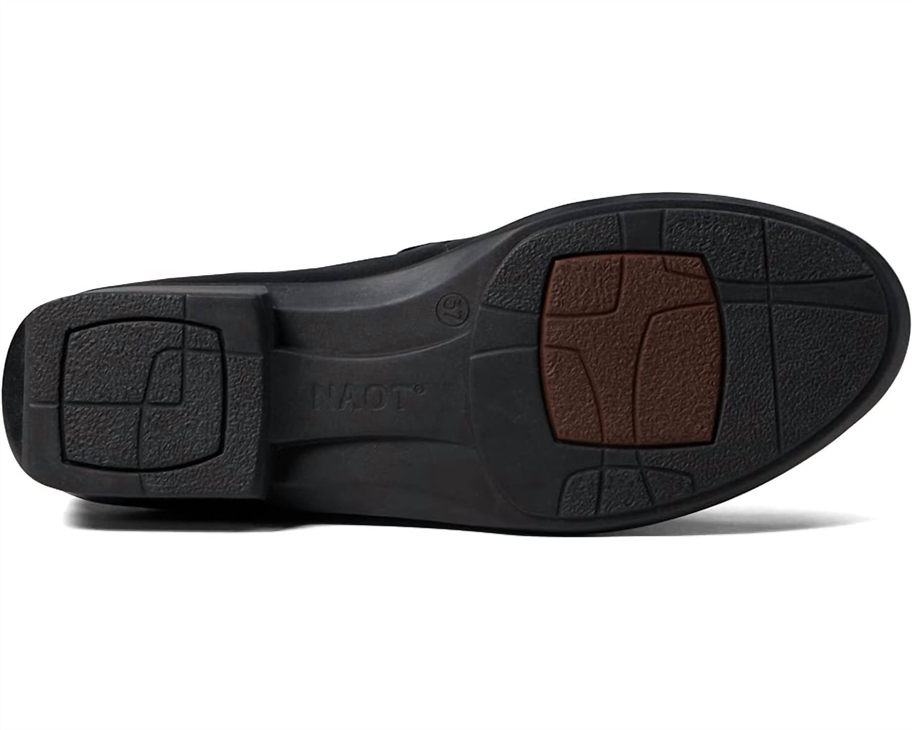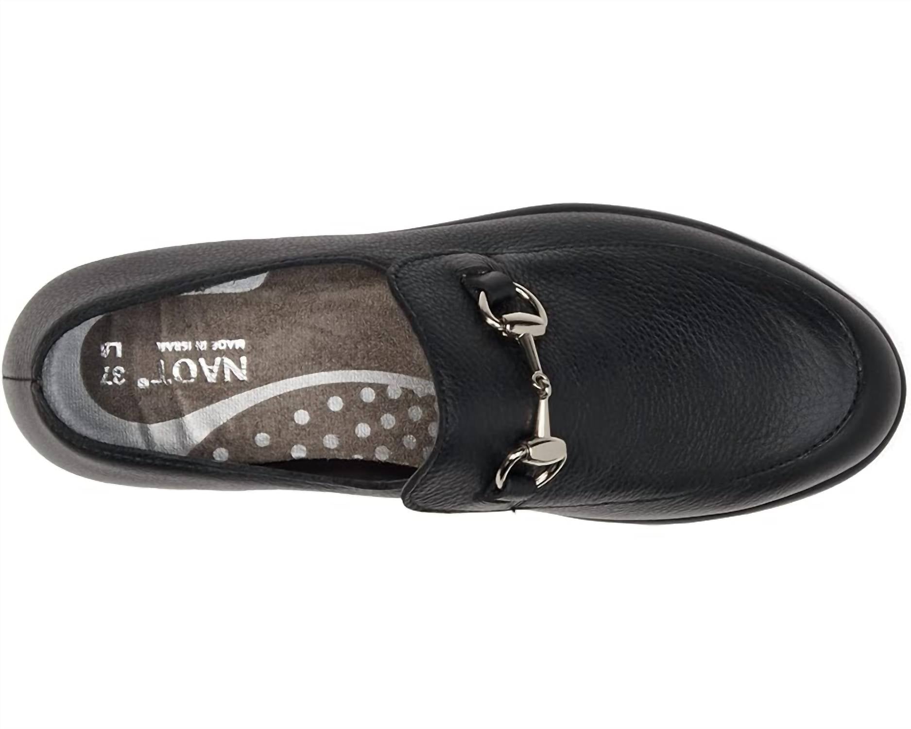 A preppy yet feminine take on the classic loafer. The rugged Naot® Bentu shoes boast a sleek look in a simple design while offering the wearer a no-fuss wear throughout the day. Leather upper. Breathable textile lining. Leather insole. Slip-on closure. Metallic embellishment on the upper. Monochromatic design. Synthetic outsole.