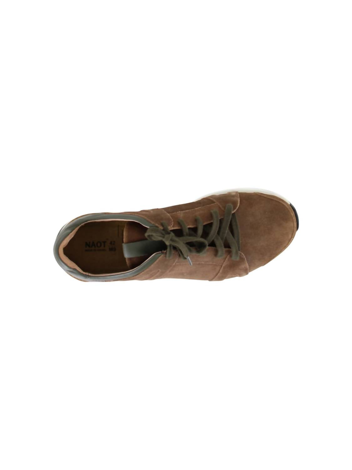Introducing the Men's Magnify Sneakers by NAOT in a stylish Antique Brown/Soft Green color palette. This sophisticated design combines soft suede and leather for a durable and fashionable look. The removable cork and latex innersole ensures all-day comfort, accompanied by a flexible 3.81 cm rubber sole thanks to the hand-sewn Strobel construction. Perfect for any wardrobe, these sneakers provide both strength and style.