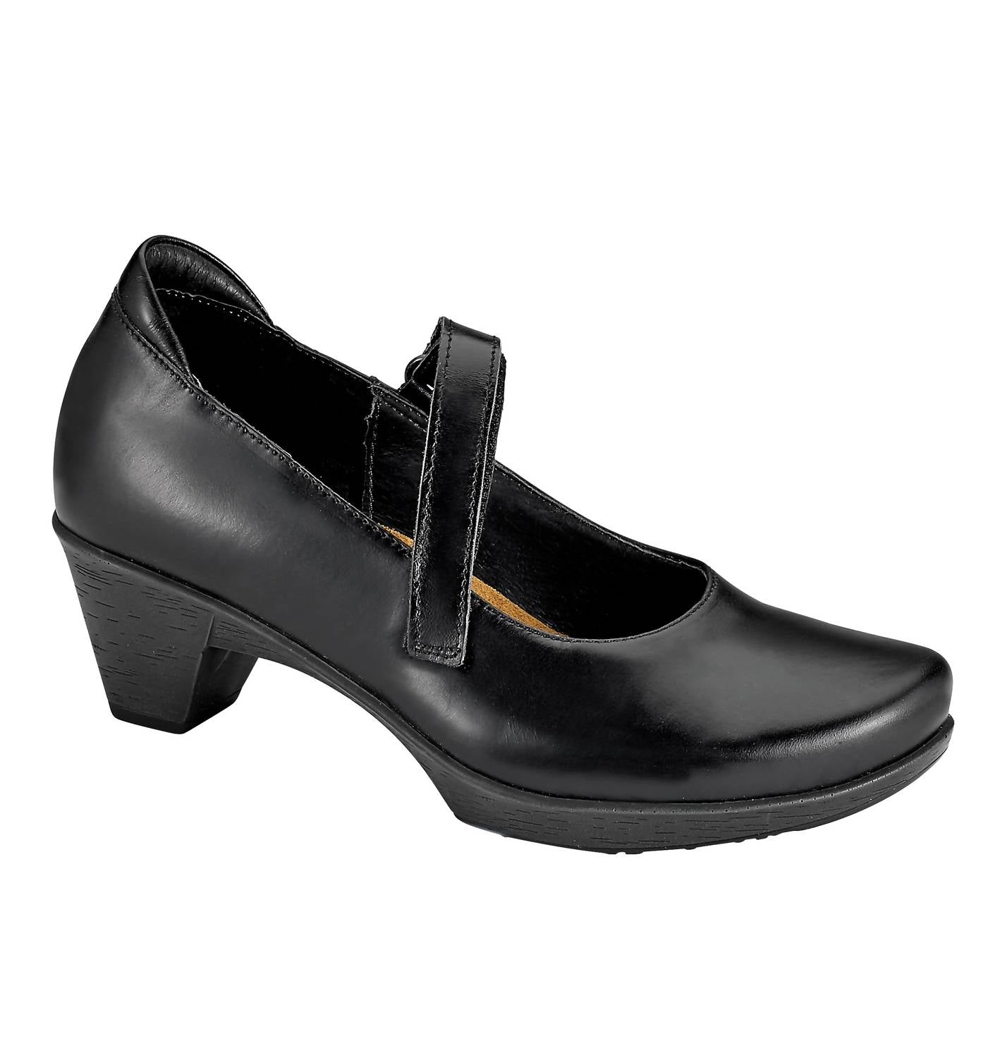 Elevate your footwear game with these adorable wedges.Maryjane with a heel. Features a hook and loop, and has a heel cup for stability and support. Naot's anatomic cork & latex footbed is wrapped in pampering suede. Runs big, size down. Sole Material: Polyurethane. Heel Height: 2". Platform Height: .5".
