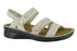 Step into comfort and style with the Naot Women's Cadence Soft Sandal in a chic ivory/gold combination, designed for summer days and beach outings. Crafted in Israel, this sandal features high-quality leather with a flat heel and an open toe shape, making it the perfect low-heel choice for those who love both Y2K trends and comfort. The removable anatomical cork footbed accommodates orthotics and fits slightly wider feet, ensuring all-day support. Velcro straps offer an easy fit, aligning with the needs of those seeking an orthotic-friendly design, and making it suitable for occasions like Thanksgiving gatherings or casual beach days.