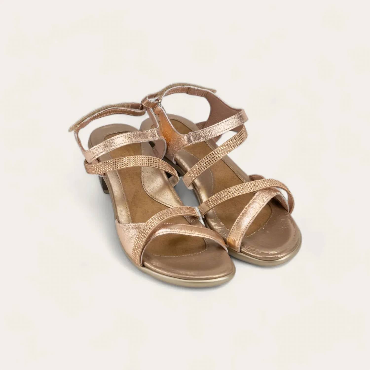 Classicly cute and all-day-wearable. We love this sandal. The Innovate is the perfect backstrap heel for all of your festive events! This sandal has a hook and loop backstrap and gore at the middle straps creating a custom fit. The Innovate has a padded front strap for ultimate comfort. The feminine rhinestone accents make this shoe stand out from the crowd. Naot's anatomic cork and latex footbed is wrapped in leather with a microfiber center to prevent slipping and molds to the shape of the foot with wear. The Avantgarde Collection features a TPR sole with a metal shank. This sole offers the look of a 2" heel without the feel. Product Information Fit: True to size, half sizes should size up Sole Material: Thermoplastic Rubber Heel Height: 2" Width: Medium Slip Resistant: No Orthotic Friendly: No Removable Footbed: No