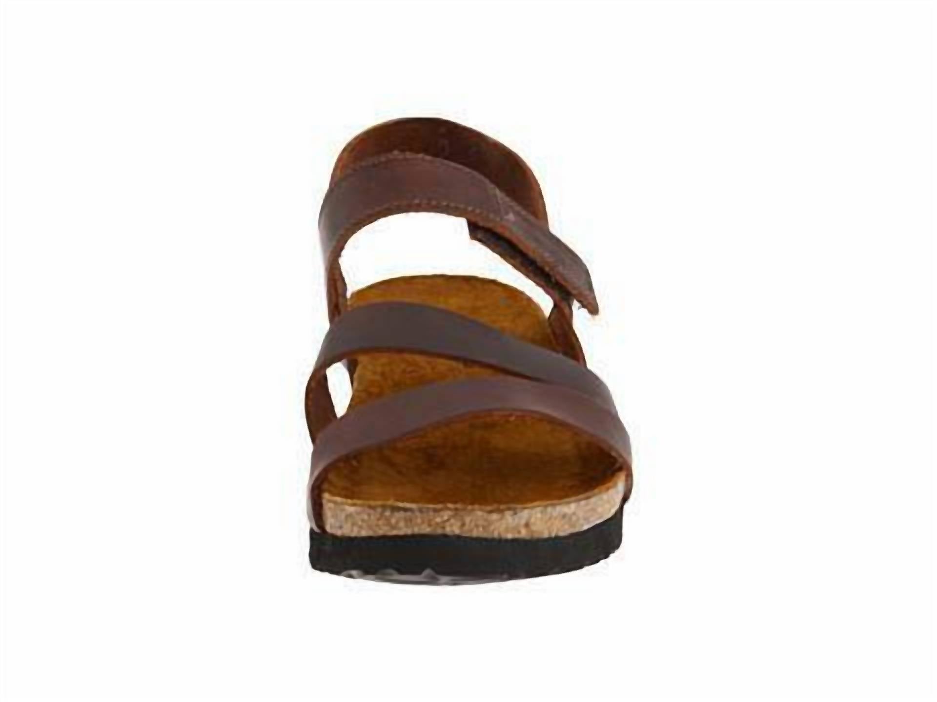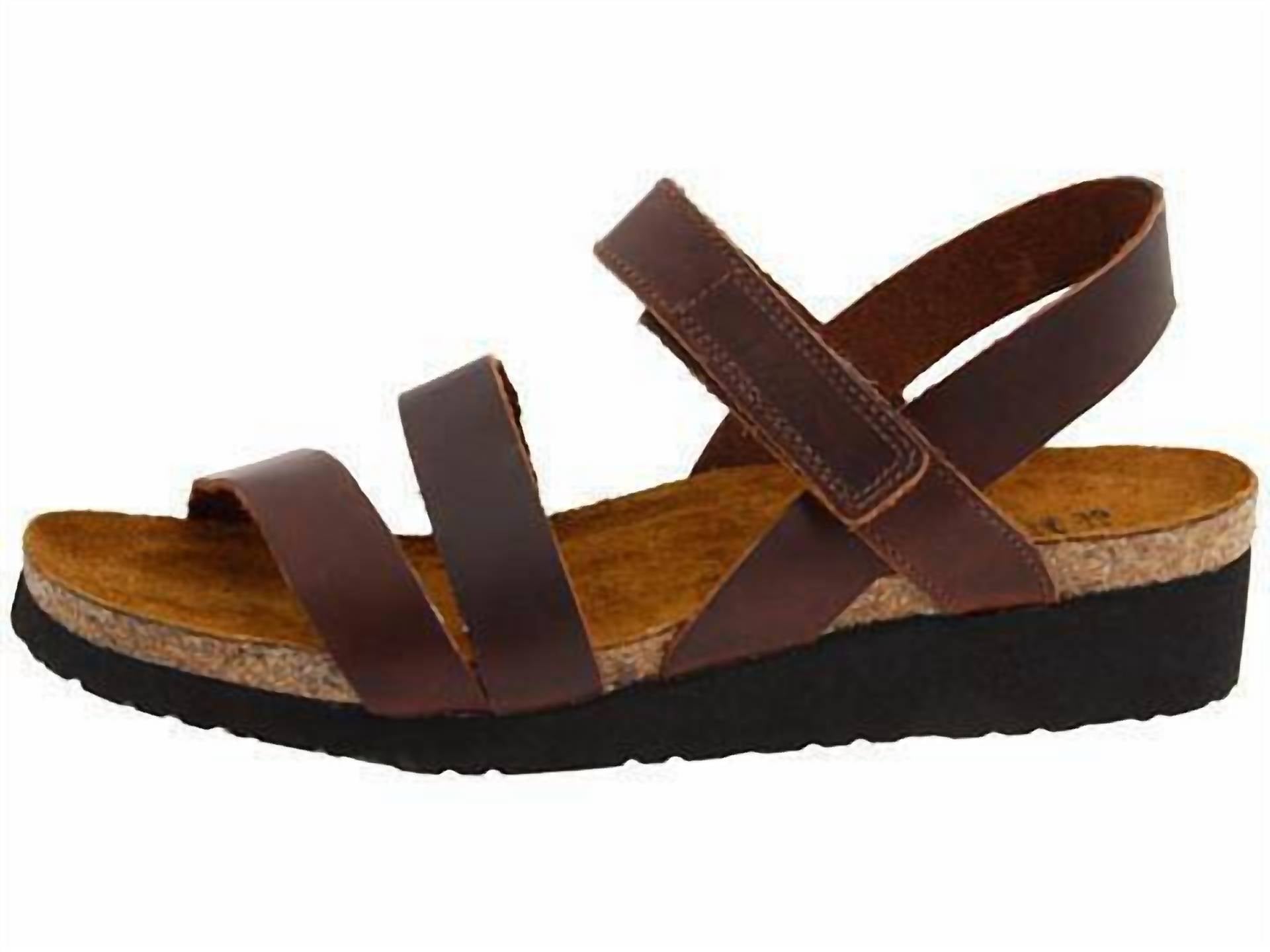 Classicly cute and all-day-wearable. We love this sandal. Introducing the Women's Kayla Wedge Sandal by NAOT, a perfect blend of style and comfort for your summer getaways. Featuring three elegantly designed straps with a hook and loop closure at the instep and a backstrap, these sandals promise stability and support. The anatomic cork and latex footbed is wrapped in soft suede, ensuring a custom fit as it molds to your foot. Made with buffalo leather, this minimalist open-toe sandal boasts a 1.5" EVA sole and is perfect for narrow to medium widths. Ideal for vacation occasions. Available Sizes: 35-44.