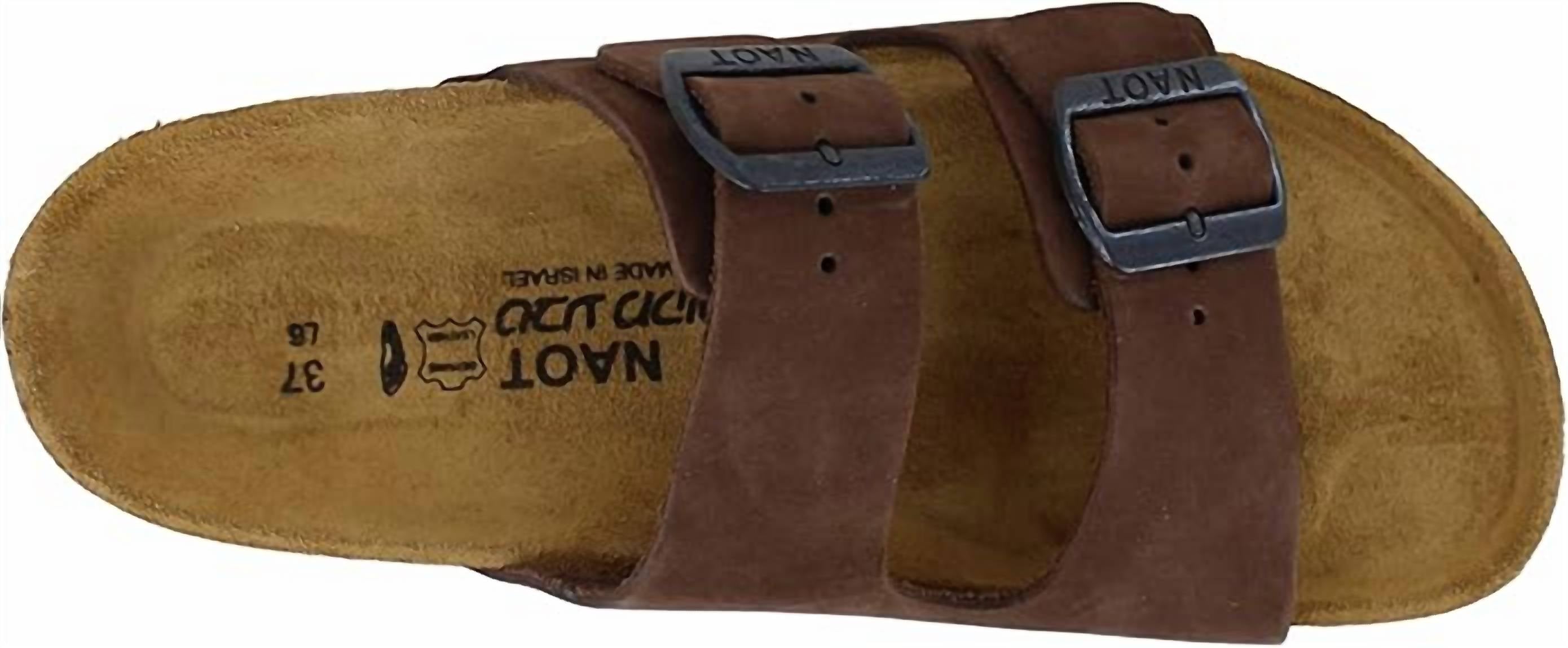 Classicly cute and all-day-wearable. We love this sandal. Meet the Women's Santa Barbara Slide Sandal by NAOT, a perfect blend of style and comfort in Java Nubuk. Featuring an adjustable design with two buckles, this sandal is crafted from premium leather and lined with suede for added breathability. The anatomic cork and latex footbed, paired with a polyurethane outsole, ensures even weight distribution and long-lasting support. Ideal for leisurely strolls with a flat heel height of 1" and under, these sandals provide a chic, relaxed vibe inspired by the Southern California coast.
