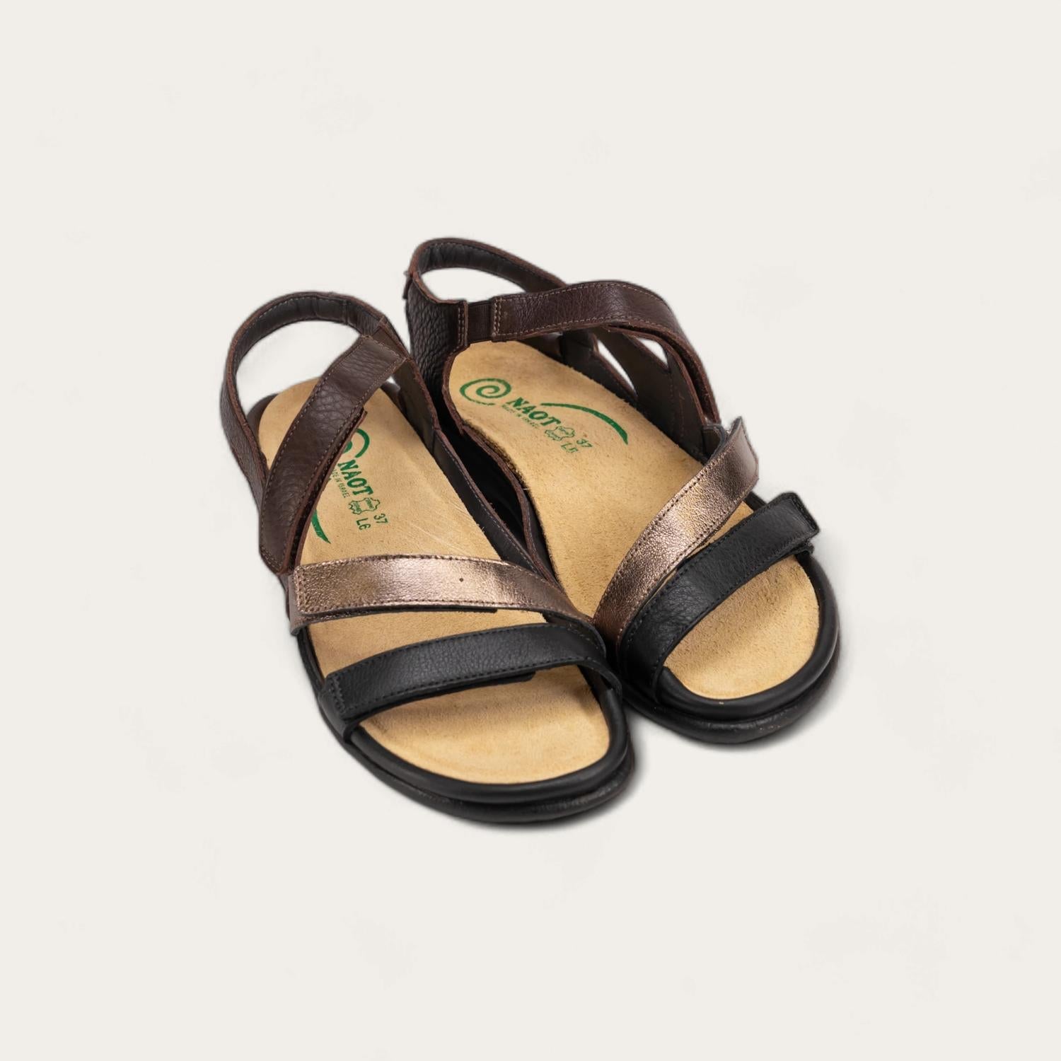 Step into comfort and style with the Women's Whetu Sandal by NAOT, designed in soft black, radiant copper, and brown. Crafted from premium leather, these sandals feature a chunky 1" heel for a subtle lift and a round toe shape for a classic look. The slip-resistant polyurethane sole ensures stability, while the orthotic-friendly design offers added support for all-day wear. Perfect for a summer church outing, these sandals are true to size; consider sizing up if you wear a half size.