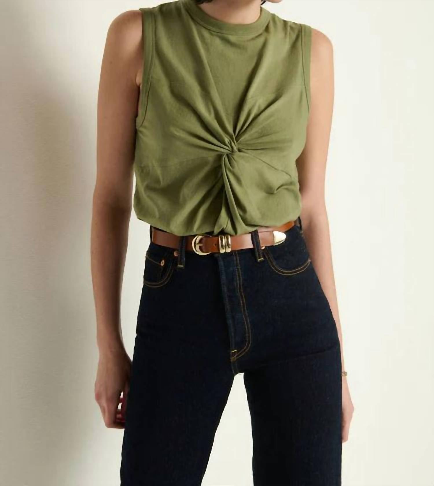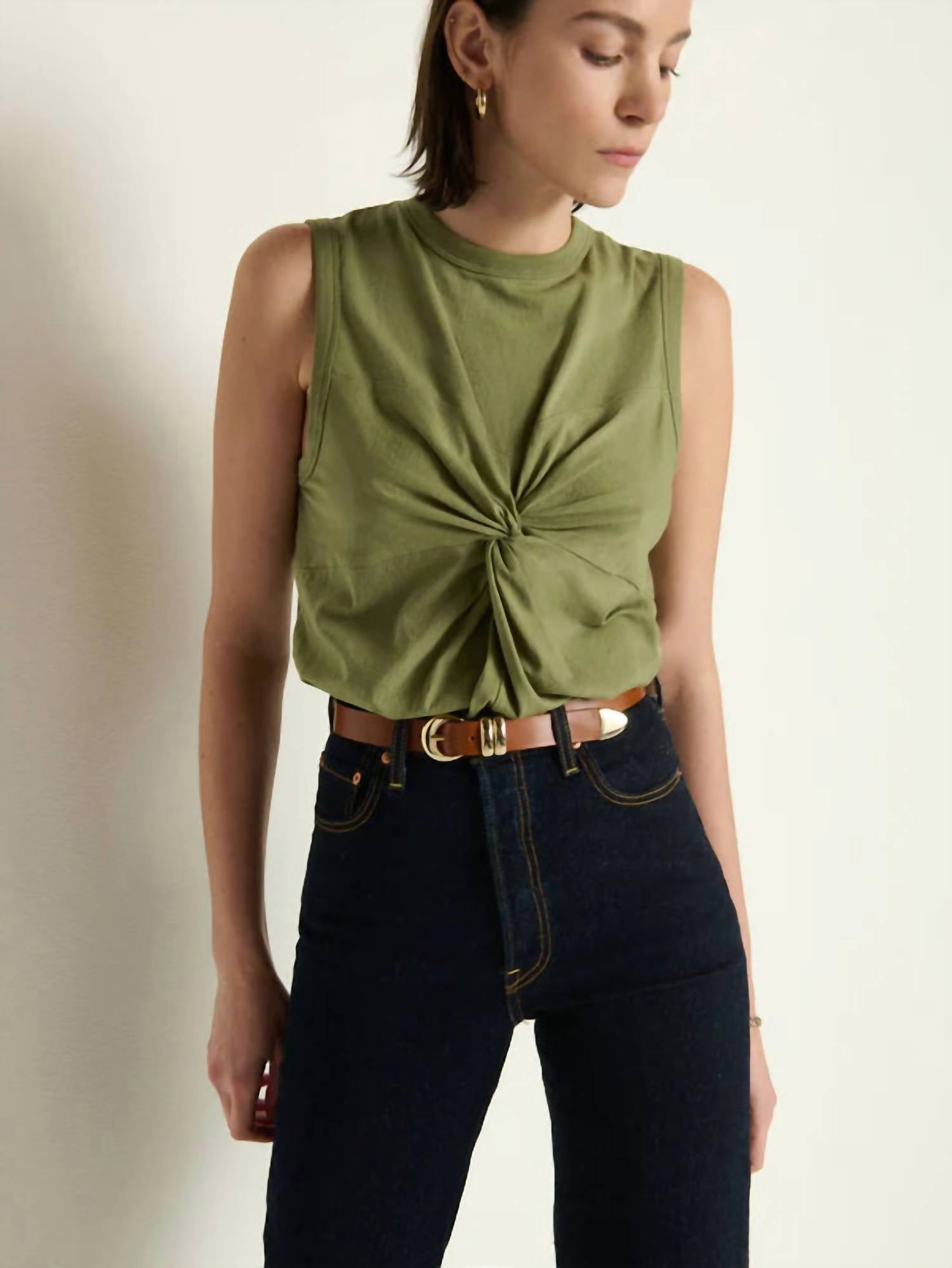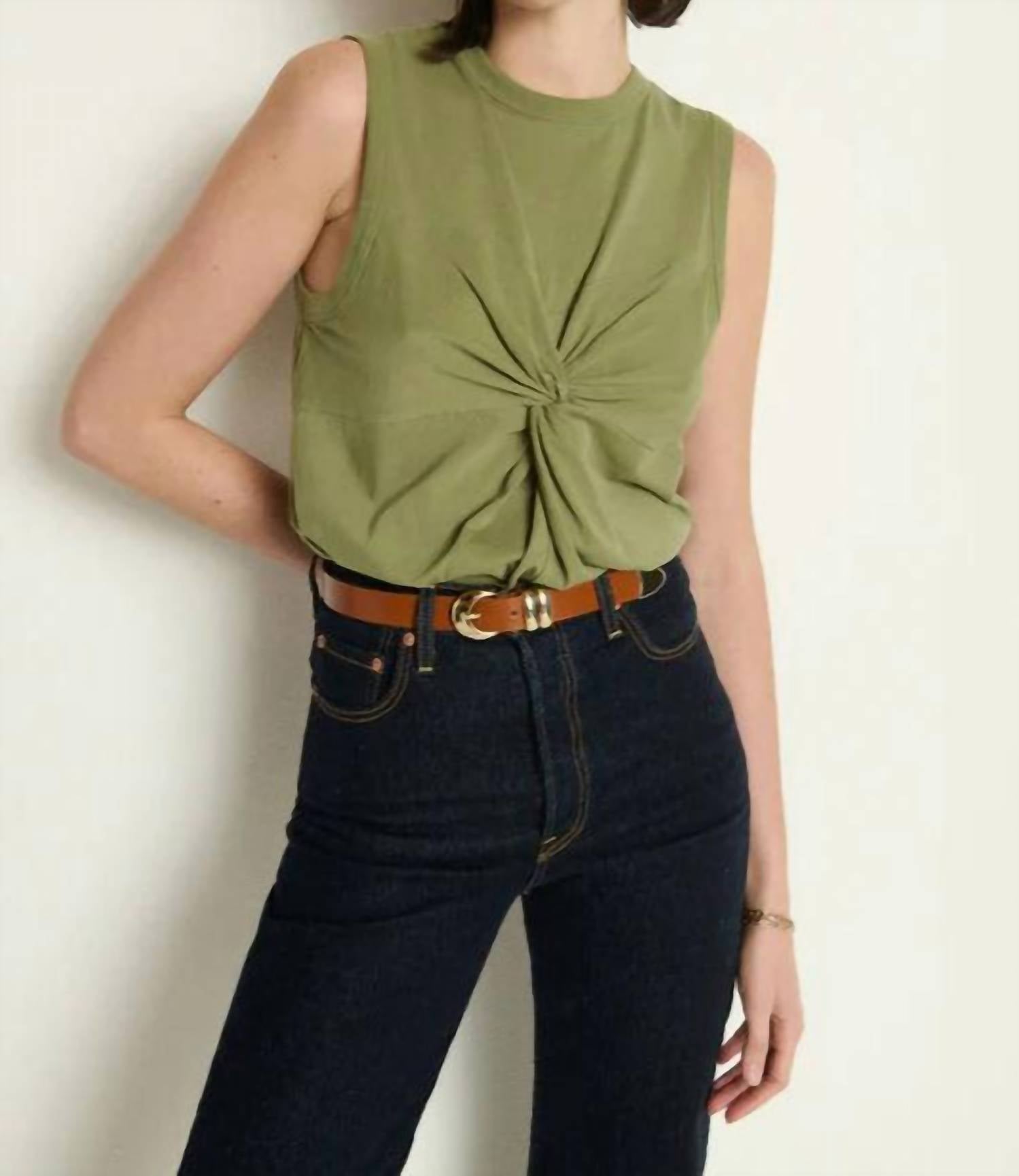 The perfect tank top for those warmer weather seasons. Introducing the Nation LTD Neve Tank in a refreshing Matcha hue, an essential addition to your summer wardrobe. This sleeveless design is crafted from 100% organic cotton, ensuring a soft touch and breathable comfort. Featuring a timeless crew neckline and classic fit, it's perfect for layering or wearing solo. Closure: Pull on. Care: Machine wash cold, tumble dry low.