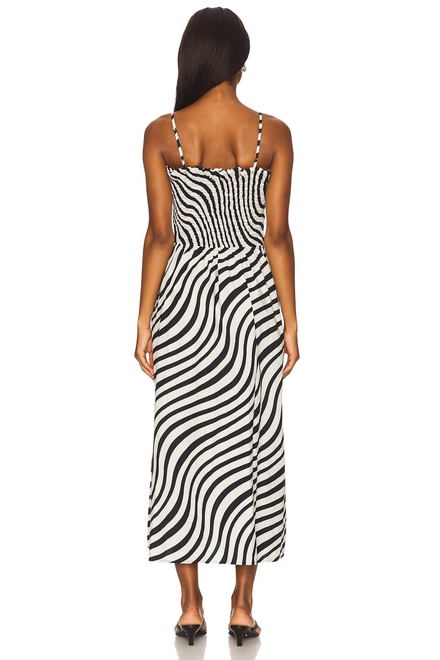 A midi dress so versatile, your options for wearing it are endless. Elevate your summer wardrobe with the Sibelle Smocked Midi Dress by Nation LTD, a boho chic staple in a swirl print. Featuring spaghetti straps and a form-fitting smocked bodice, this dress is crafted from 100% Pima Cotton with a crisp, midweight feel. Made in Peru, the pull-on style offers adjustable straps and pockets for added convenience. Care: Machine washable; turn inside out, wash cold on a gentle cycle, lay flat to dry to maintain its structured elegance.