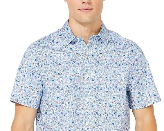 Nautica Men's Blue Sail Collection Floral Print Oxford Short Sleeve Shirt Natural Size XX-Large