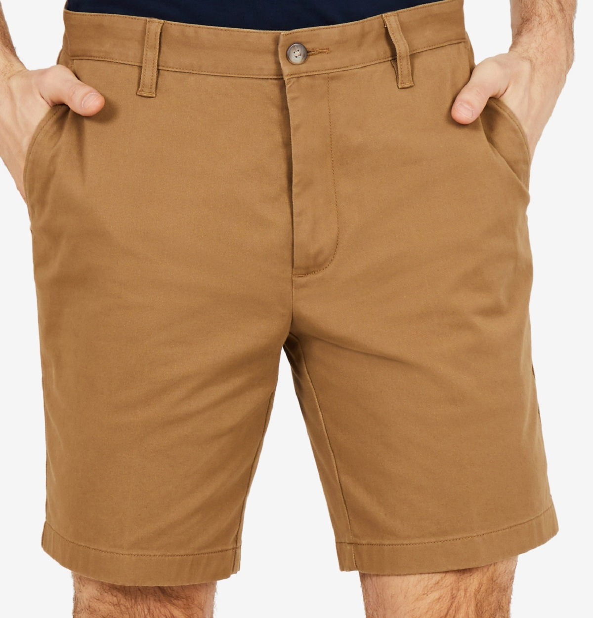 Made of a stretch cotton fabrication with a flat-front design and a clean cut look| these shorts are an essential pair to keep around for Saturdays and vacation days. | Classic fit| Flat front| Zip fly with button closure; belt loops| Two side slant pockets; two back button-through welt pockets| Approximate inseam; 8 1/2
