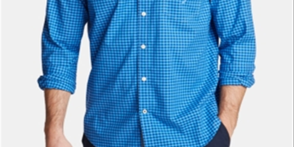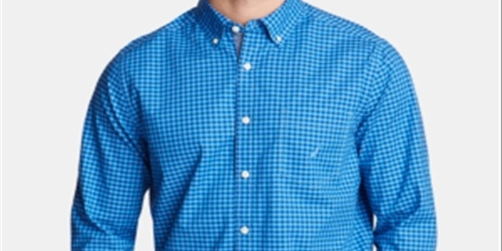 Nautica Men's Classic Fit Poplin Shirt in Gingham Blue Size XXX-Large