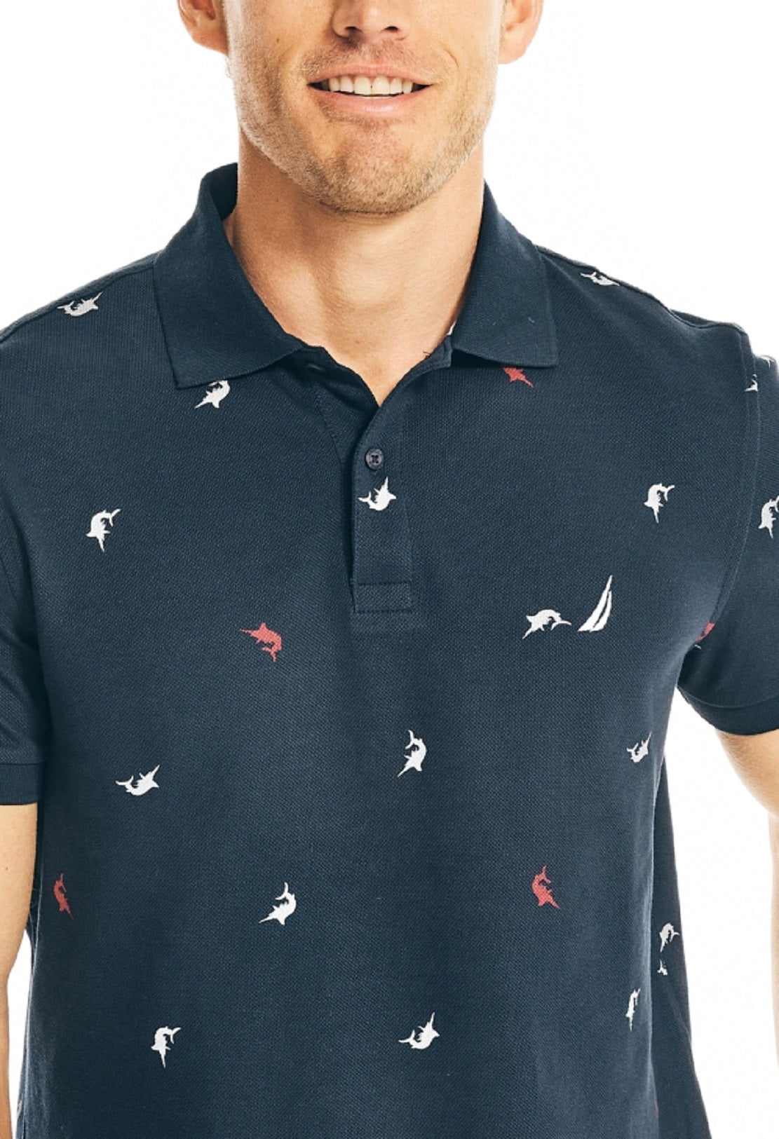 Nautica Men's Sustainably Crafted Classic Fit Critter Print Deck Polo Blue Size Large