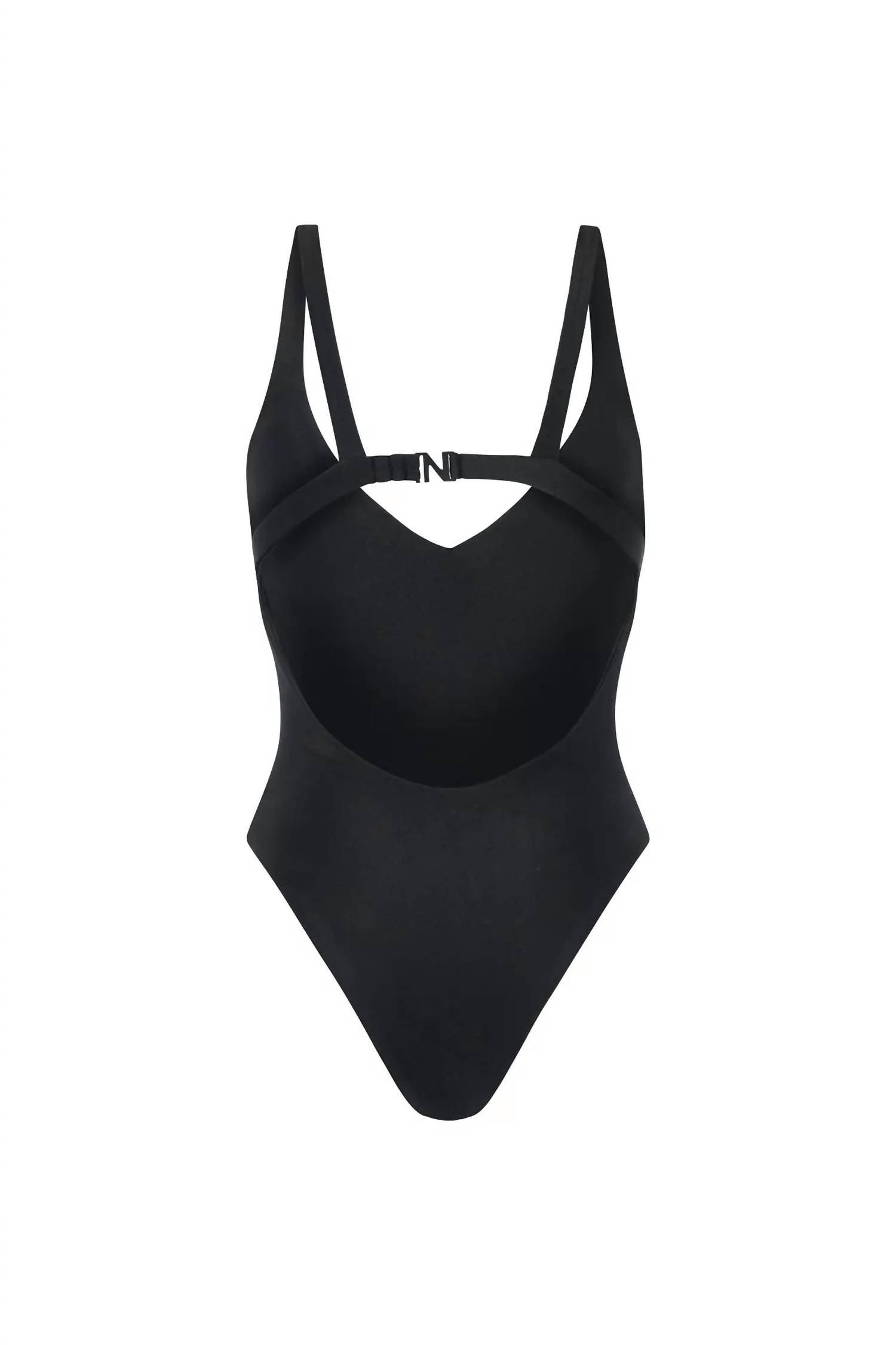 Designed to perfection and fit to flatter. You are going to love this one piece swimsuit. Dive into elegance with the Fuente Plunging V-neck One Piece by Nelblu, a stunning swimwear choice in a solid Shira Nero hue. Perfect for a sunny beach day, this women's one-piece features a dramatic plunge "V" cleavage and an open back, offering cheeky coverage. Designed with meticulous detail, it ensures a sleek silhouette while enjoying a relaxing summer. Care for it by washing with cold water and mild detergent, avoid fabric softeners and harsh chemicals, and drip dry in the shade to maintain its quality.