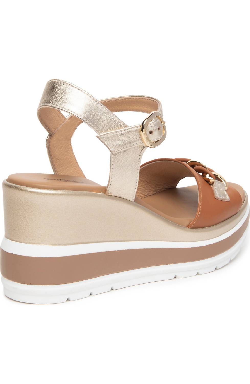 Elevate your footwear game with these adorable wedges. Elevate your look with the Women's Chain Ankle Strap Platform Wedge by NeroGiardini, a stylish choice featuring a bold chain-link hardware detail on the vamp. These wedges, designed in a classic brown, offer a chic 2.75" integrated wedge heel, perfect for a mid-height lift. Crafted with a luxurious leather upper and lining, and finished with a synthetic sole, these sandals are made in Italy and guarantee quality and sophistication. Adjustable ankle strap with buckle closure, ensuring a secure, personalized fit.
