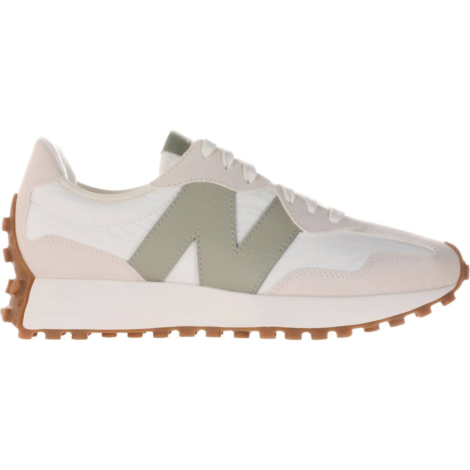 Workout in style with these adorable athletic sneakers. Step into retro-inspired style with the New Balance Women's Three Two Seven Sneaker, a unique blend of past and present. These athletic shoes, crafted with a suede and nylon upper, are accented with animal prints, offering a bold look in olive. The oversized N logo nods to a vintage aesthetic, while the lace-up closure ensures a secure fit. Ideal for spring season workouts, these sneakers feature a flat heel and round toe design, seamlessly combining fashion with function.