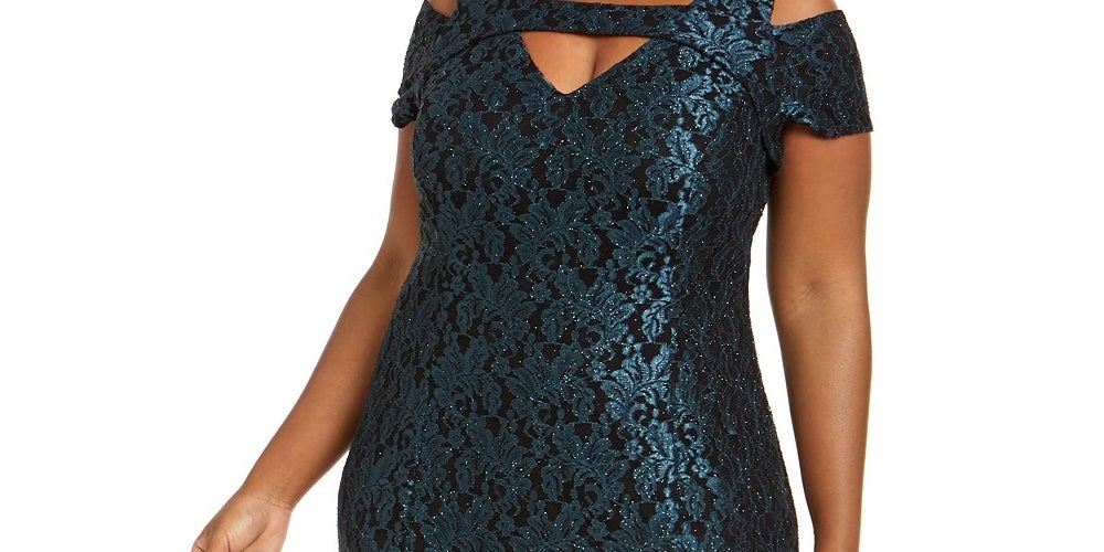 Nightway Women's Embroidered Glitter Cap Sleeve Keyhole Maxi Drop Waist Evening Dress Green Size 16W