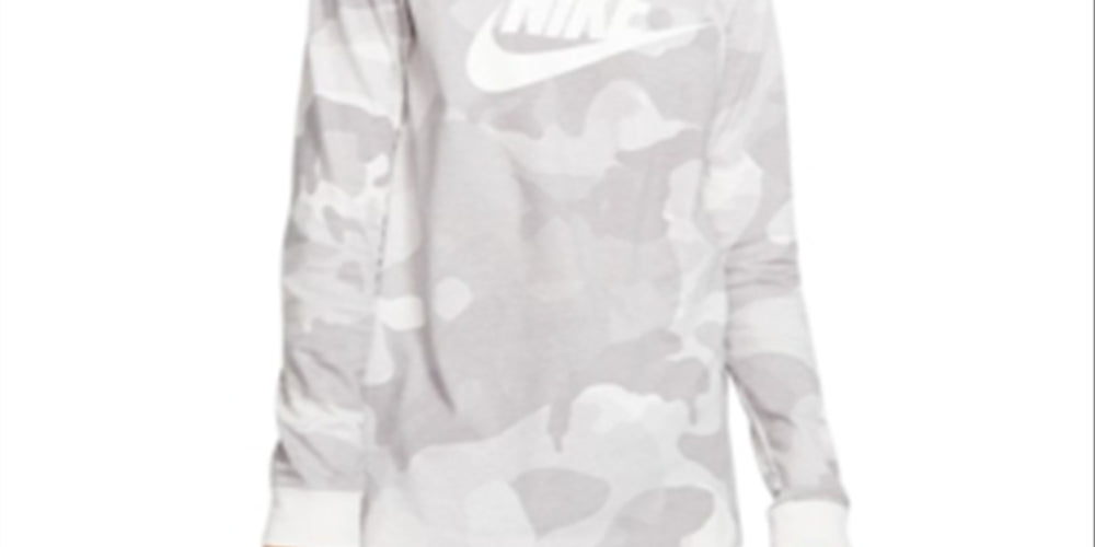 Boys Gray Camo Tee S 8 - 9 Cotton Stretch Long Sleeves White Collar & Cuffs.