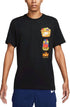 The Nike Fruit Basket Pocket Short Sleeve T-Shirt combines fun and functionality with its vibrant multi-graphic design and a convenient front pocket. Made in a sleek black solid color, this men's t-shirt features a crewneck and pull-on closure for easy wear. The short sleeve length complements its casual style, and it measures 26.5" in garment length. Perfect for a laid-back look, this tee sports the iconic Nike Just Do It logo on the back.