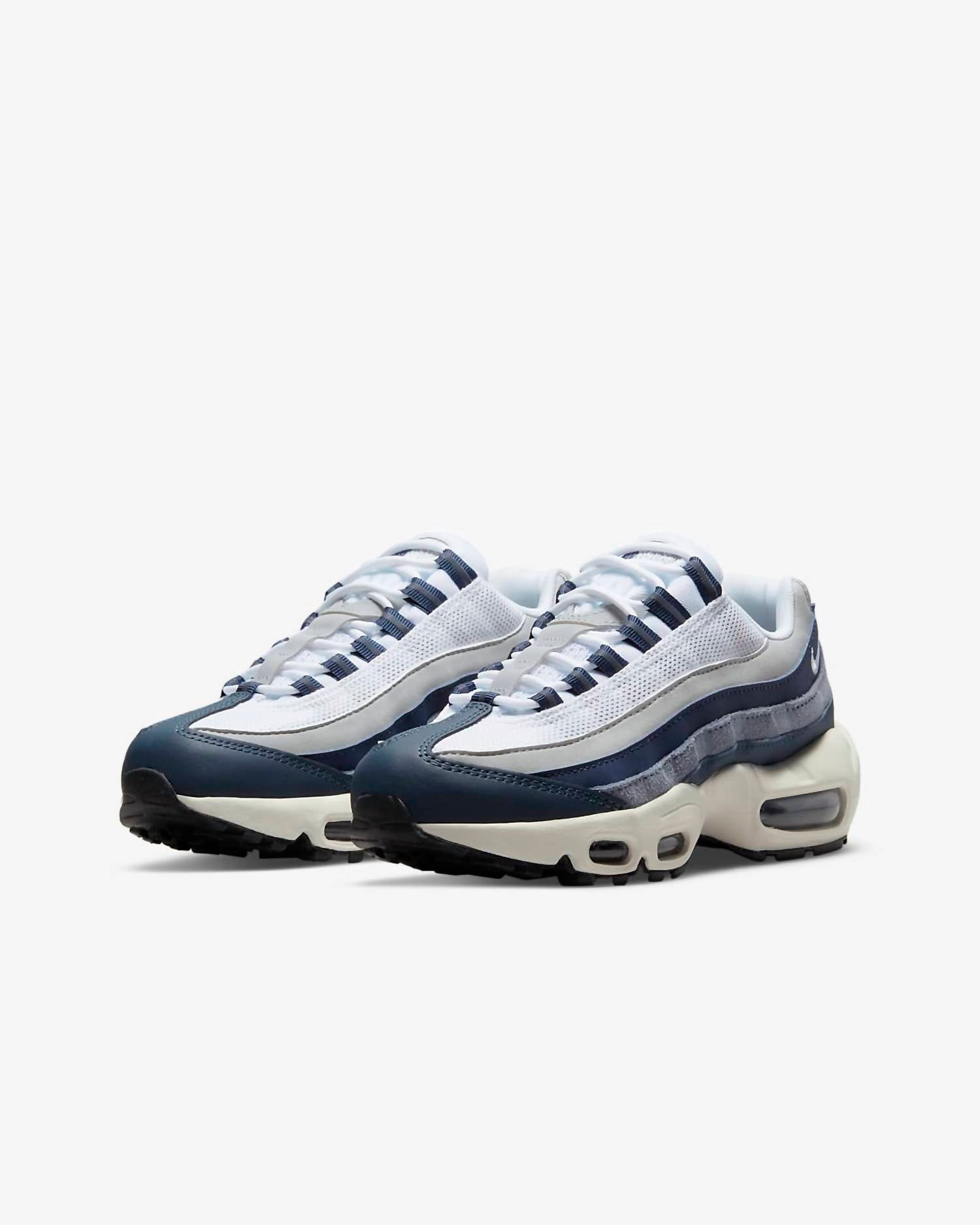 Style # CJ3906-403. Color: Midnight Navy/White-Sail. A recrafted model of Air Max 95, a grade school model with men's specifications. Combination upper of synthetic leather and nylon mesh. It has a calm coloring.