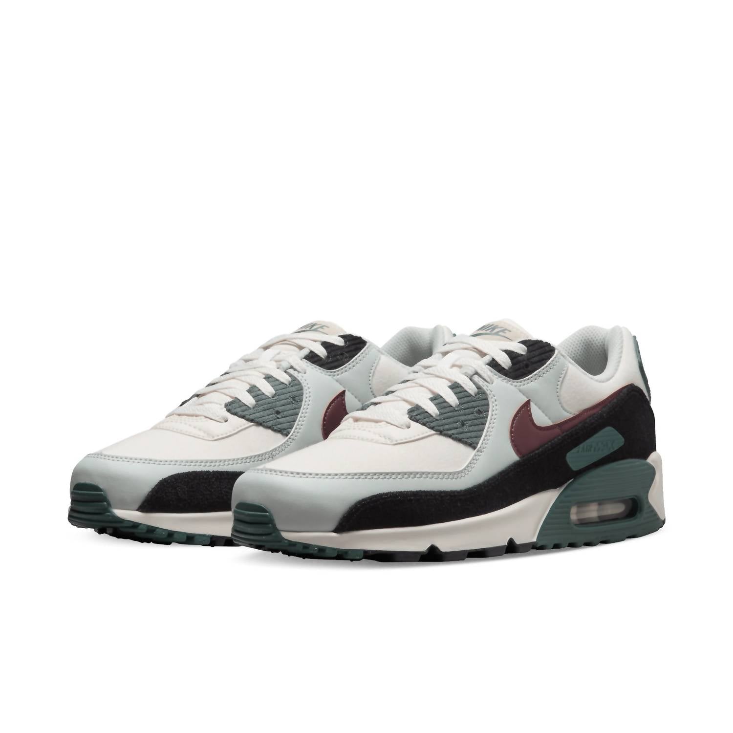This Men's Air Max 90 Premium Sneakers, a harmonious blend of style and comfort. These iconic shoes feature a mix of leather, textile, and synthetic overlays on the upper for a durable, layered look. The design pays homage to its running roots with a signature rubber Waffle outsole for traction and a visible Air unit ensuring cushioned comfort. These sneakers promise to elevate your athleisure ensemble while keeping you comfortable with a padded, low-cut collar.