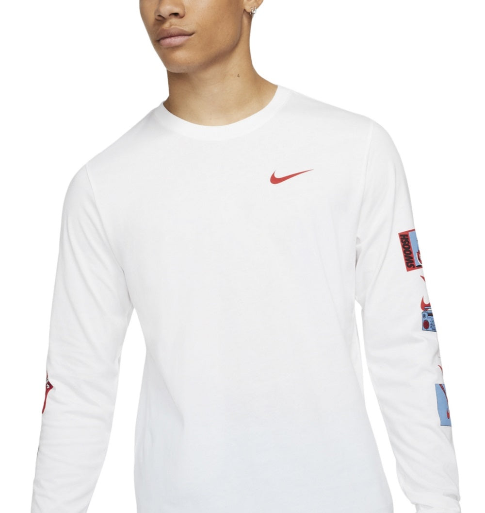 Long sleeve with all-over racer style graphics | Ribbed crewneck collar and cuffs | Straight hemline | 100% cotton fabric for full-day comfort | Machine wash