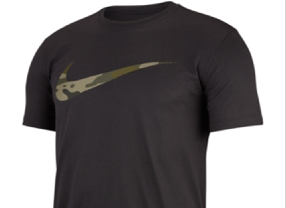Refresh your training look with this T-shirt from Nike| in moisture-wicking fabric that helps keep you dry for the duration. A classic logo with a camo print adds fresh flair.| Nike Dry fabric with Dri-FIT wicking technology that helps evaporate moisture| Ribbed crew neckline| Printed logo at front| Polyester| Machine washable