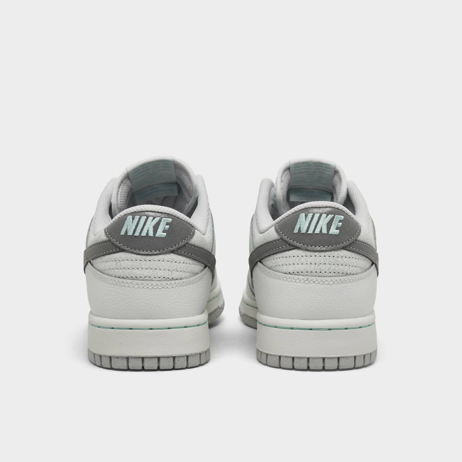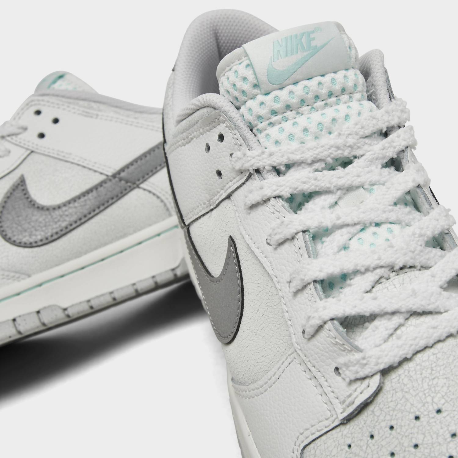 Step into timeless style and comfort with the Nike Dunk Low Retro SE in Glacier Ice, Metallic Silver, and Summit White. Constructed with premium leather, the upper develops a vintage character over time, complemented by reflective details for an eye-catching finish. The foam midsole ensures light, responsive cushioning, while the rubber outsole, featuring the classic pivot circle, adds durability and traction. With a flat heel under 1", these men's athletic shoes offer a plush and dynamic wearing experience.