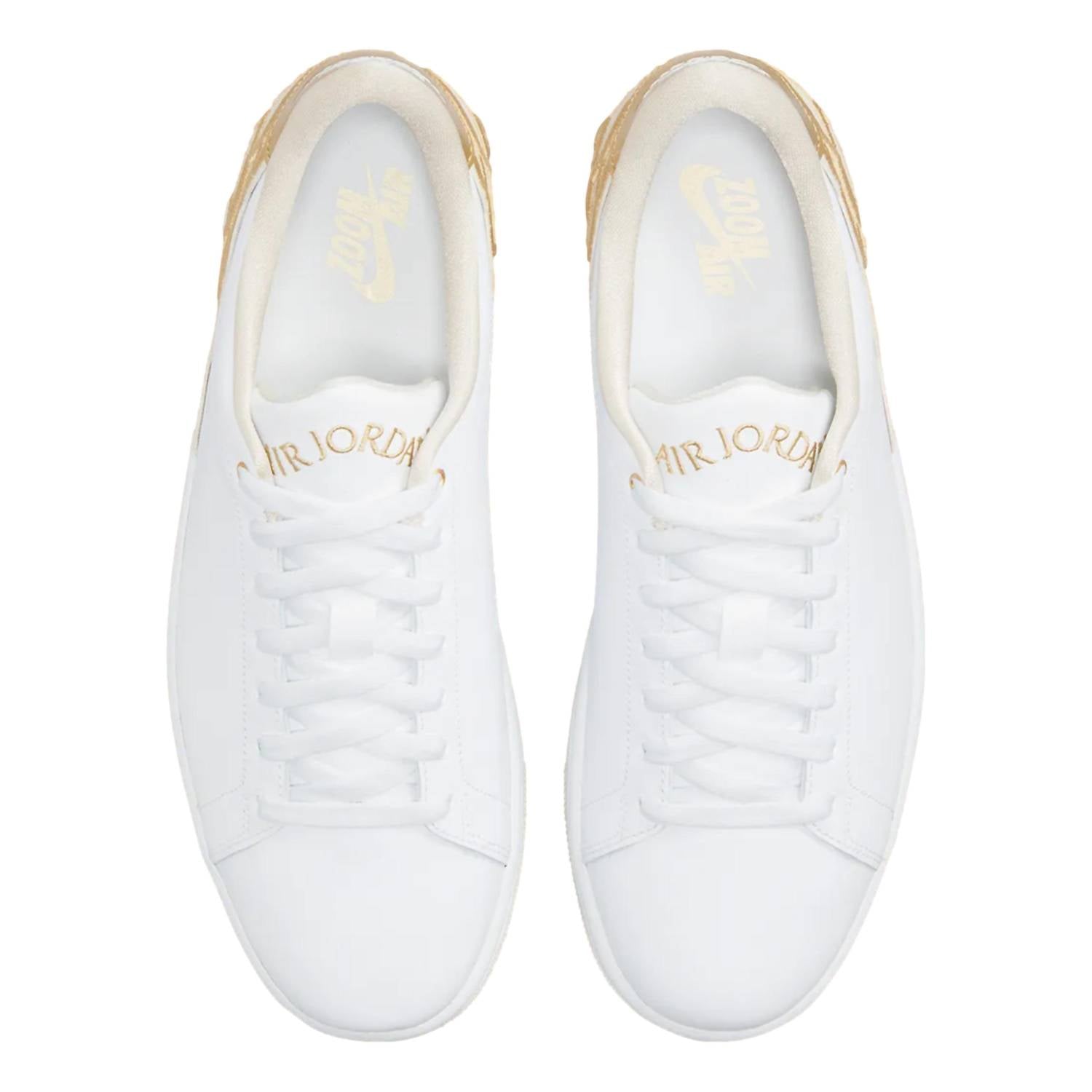 Crafted with a premium leather upper in an elegant white and gold finish, this sneaker seamlessly merges heritage with modern style. Its round toe shape and flat heel design ensure comfort for your every step, making it an ideal choice for casual wear.