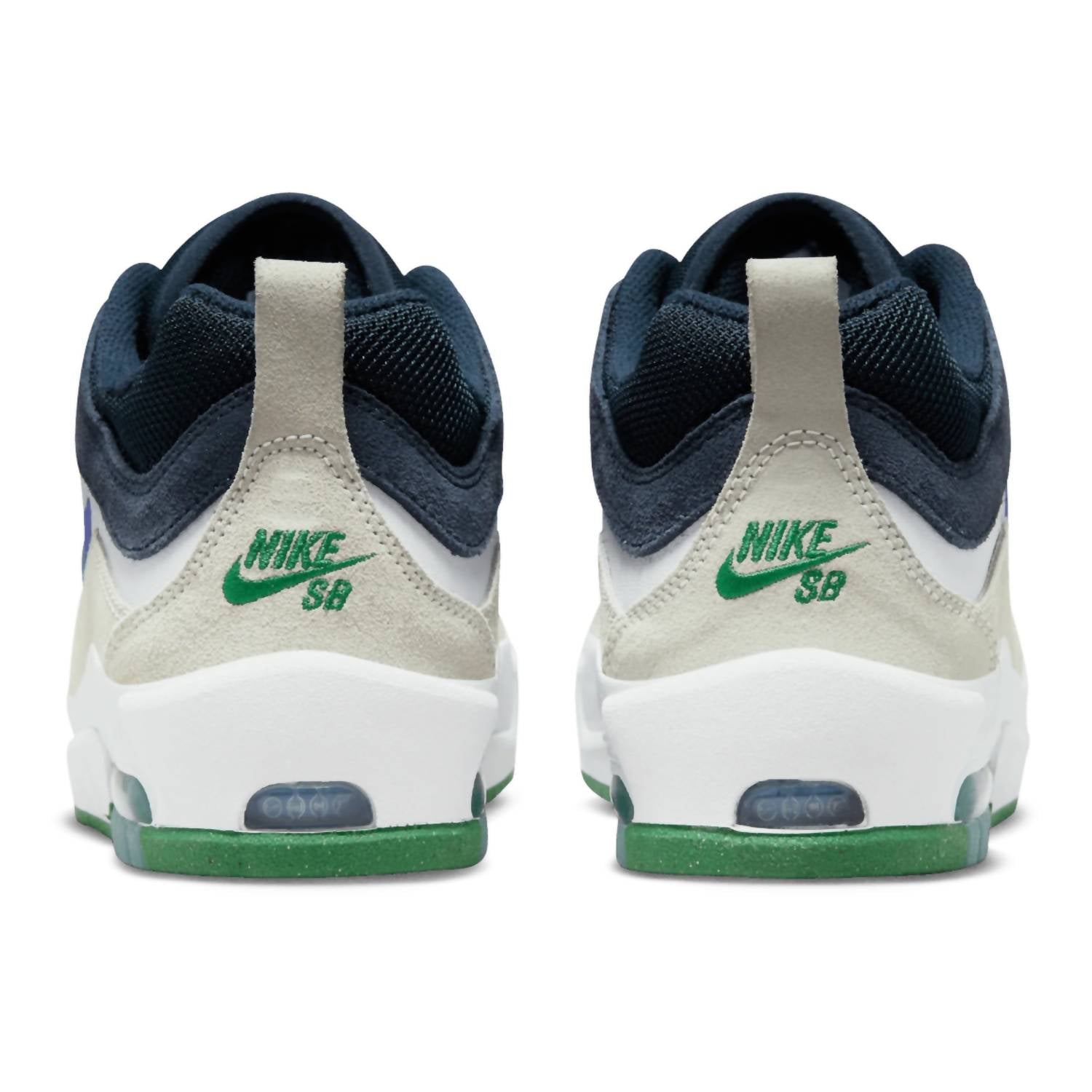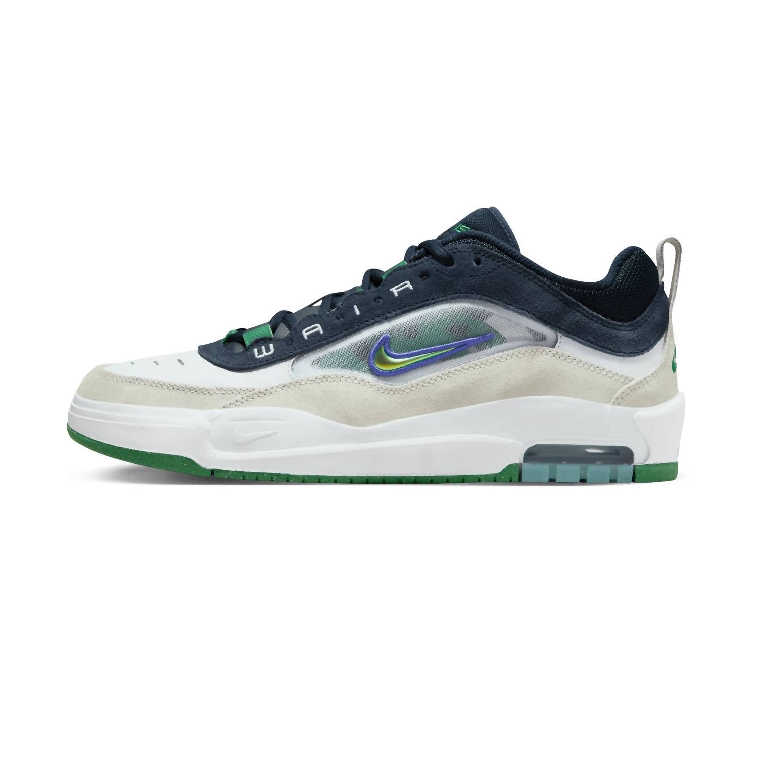 This sneaker features leather and mesh upper, with Max Air technology for comfort, a cupsole for quick break-in, and a herringbone patterned outsole for grip.