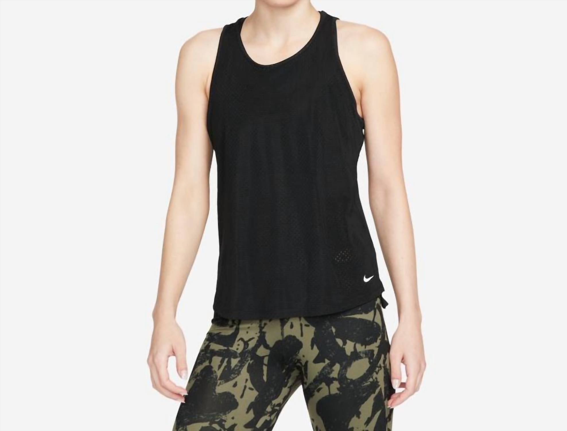 Made with our soft, breathable mesh fabric for cooling comfort during your workouts and so much more, the Nike One Breathe Tank is lightweight and wicks moisture to help keep you dry. Made with at least 75% recycled polyester fibers. Lightweight mesh improves airflow to help you stay cool during high intensity workouts and warm weather. Nike Dri-FIT technology moves sweat away from your skin for quicker evaporation, helping you stay dry and comfortable. The relaxed fit follows the lines of your body without feeling snug, while the curved hem and side slits help give you maintain your full range of motion through your movements. Curved hem provides extra coverage. Side slits offer extra give 80% polyester/20% spandex. Swoosh logo printed at inner front right hem. Machine wash.