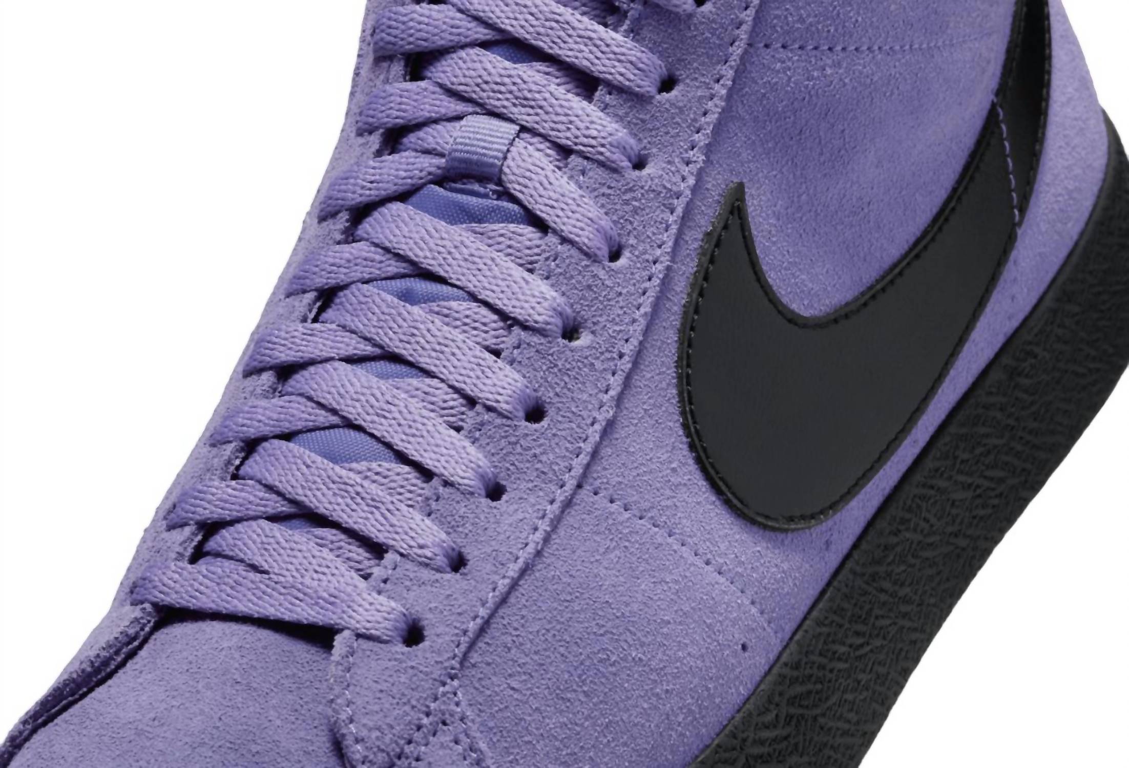Elevate your skate style with the Nike SB Zoom Blazer Mid Skate Shoes in Dusty Amethyst, designed by Nike for the modern skateboarder. The suede upper offers a perfect balance of softness and durability, complemented by a distinctive leather Swoosh. Featuring Zoom Air cushioning for a responsive feel, and vulcanized construction for a flexible, broken-in sensation. These sneakers provide optimal board traction with a rubber outsole, ensuring both style and performance.