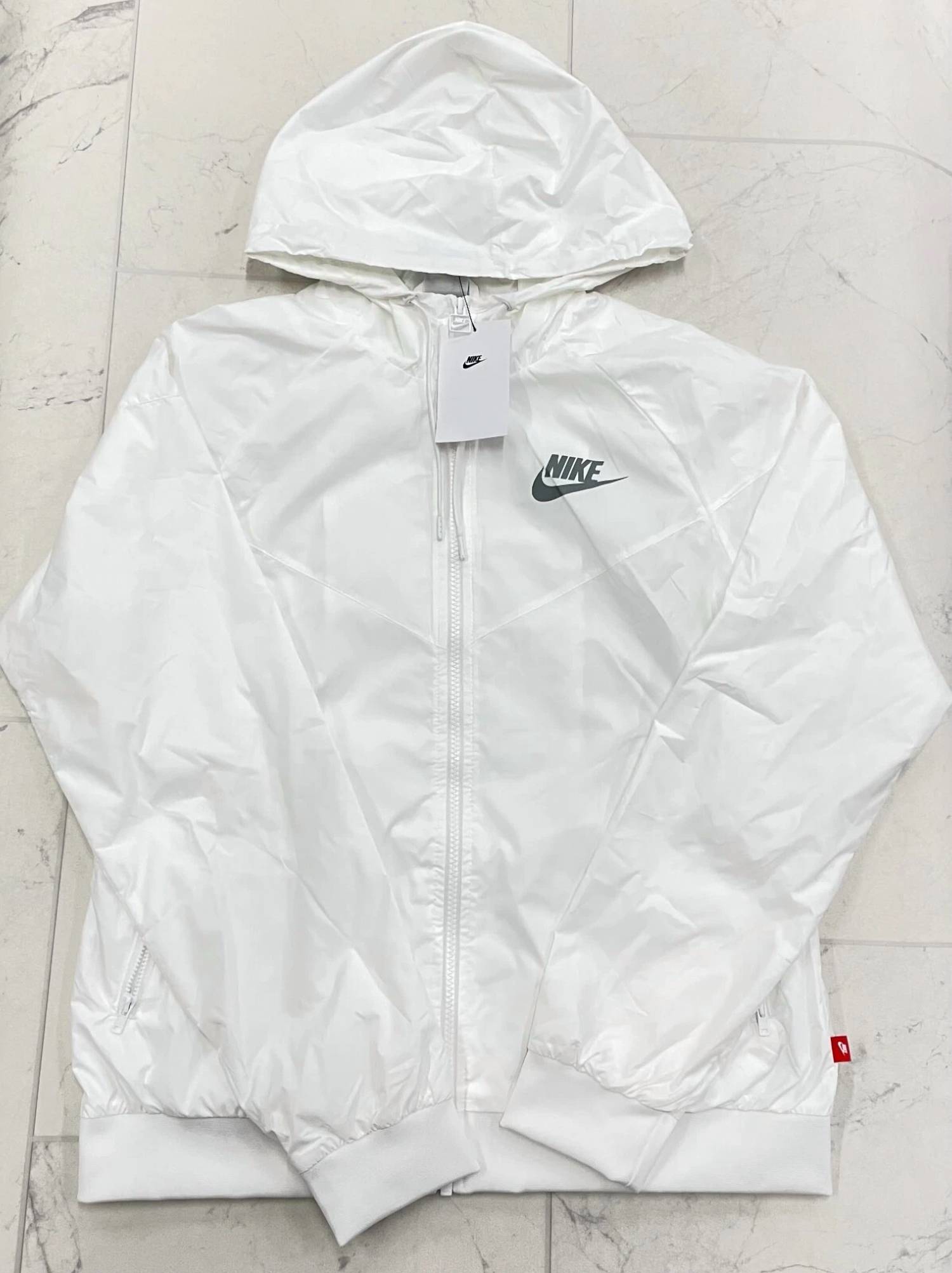 Stay dry and stylish with the Unisex Windrunner Windbreaker Jacket by NIKE, designed for fitness and workout sessions. Crafted from 100% recycled polyester, this white windbreaker features long sleeves with elasticated cuffs and a zip closure. The exposed bungees at the hem allow for a customizable fit, while the solid pattern enhances its sleek Athleisure appeal. Care for this jacket is simple with machine wash instructions, making it a practical choice for spring.