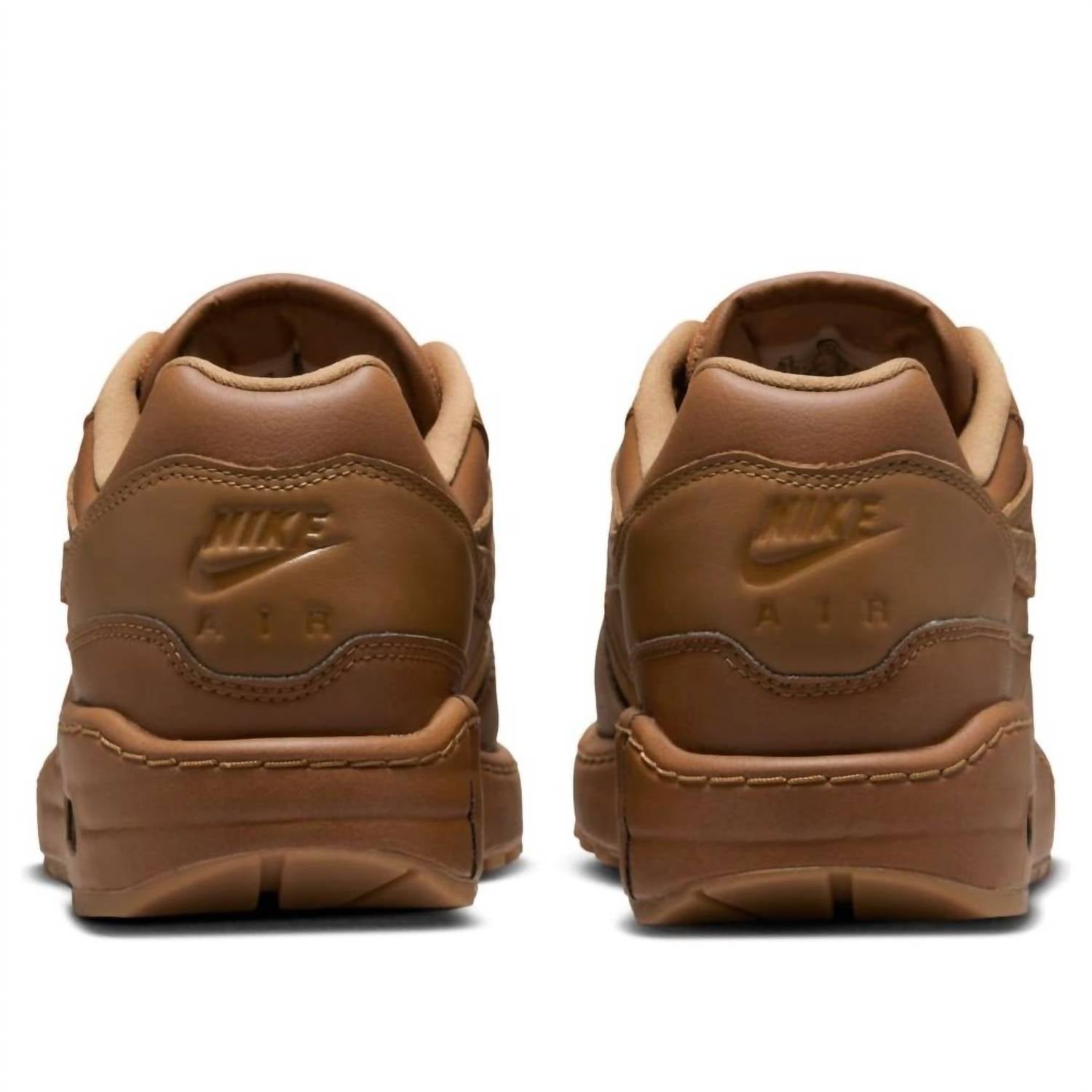 Cute, functional, and comfortable. These sneakers check all the boxes. Elevate your summer style with the Nike Women's Air Max 1 Luxe Ale Shoe in a sophisticated brown hue. Designed with a round toe and flat heel, these sneakers are perfect for holiday parties and casual outings alike. Brand: NIKE. Ideal for adult women seeking both comfort and elegance, these shoes are your go-to for every summer occasion.