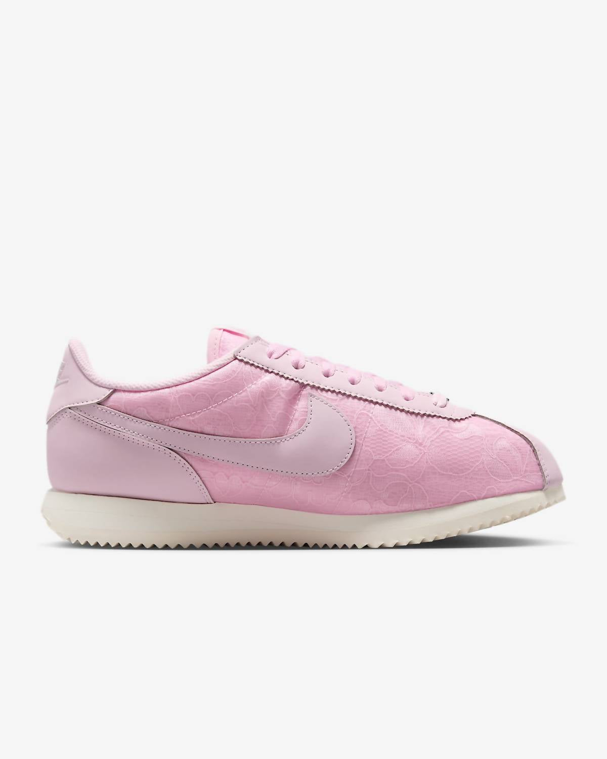 When fashion and function come together seamlessly. Experience the iconic Nike Women's Cortez Lace Shoes, a revamped classic that combines retro appeal with modern enhancements for ultimate comfort. These sneakers feature a round toe shape with a wider toe area and firmer side panels for a stable fit, perfect for all-day wear. The ribbon lacing and floral lace overlay add a feminine, ballet-inspired touch, while the foam midsole with wedge insert ensures lasting comfort. The durable rubber outsole in herringbone pattern rounds off this summer streetwear essential in Pink Foam/Soft Pearl.