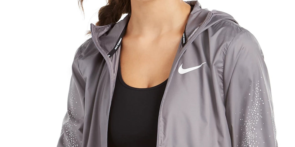 Nike Women's Essential Water-Repellent Hooded Running Jacket Gray Size Extra Large