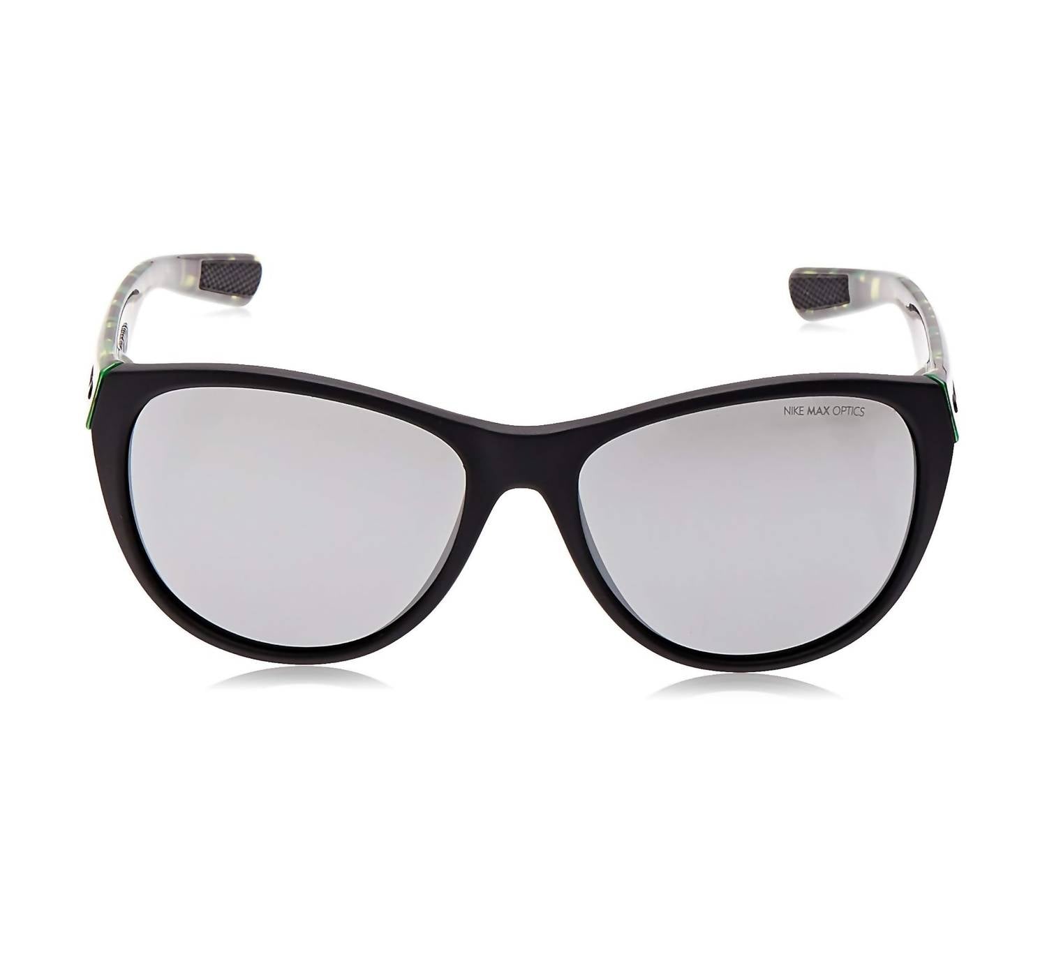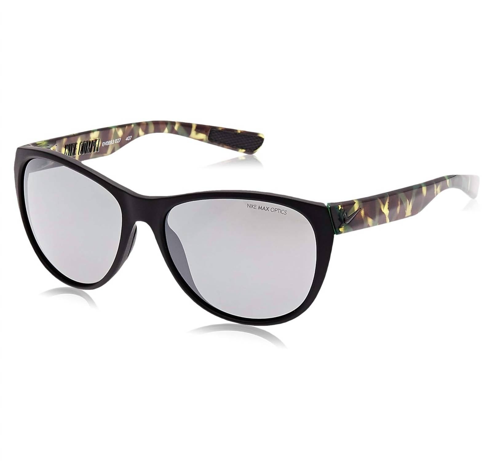 Make a statement and shield your eyes in these fashionable, yet practical sunglasses. Grab these adorable shades for your next vacation and elevate your accessory game. Discover style and comfort with the Women's Evo883 Sunglasses by NIKE, featuring a chic black and green color scheme. Engineered with a lightweight nylon frame, these sunglasses ensure durability and lasting comfort. They boast a lens width of 57mm, a bridge size of 19mm, and a temple length of 145mm, accompanied by a 6 base frame design for a relaxed fit. Enhanced with cam-action hinges and soft rubber inlay nose pads for improved grip and stability, these sunglasses are your perfect daily companion.